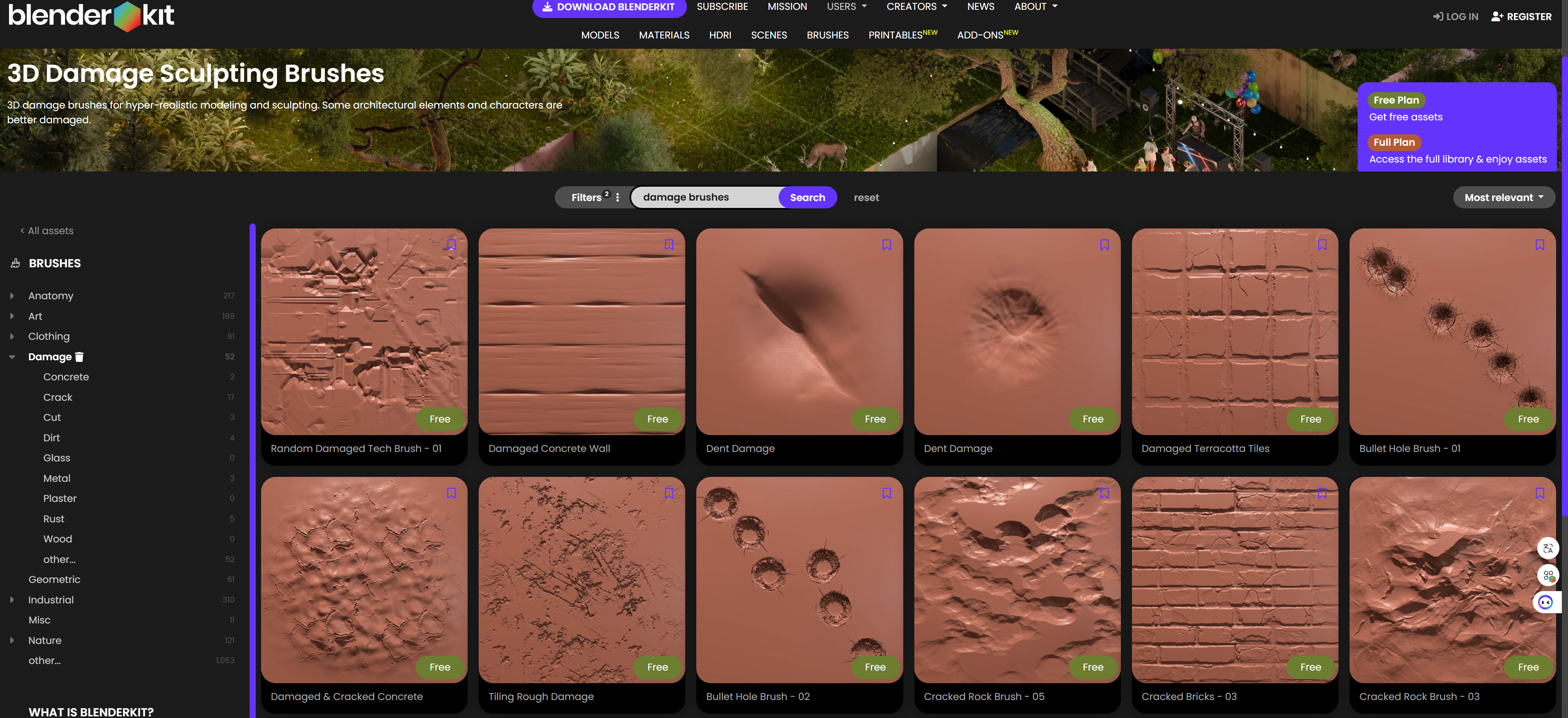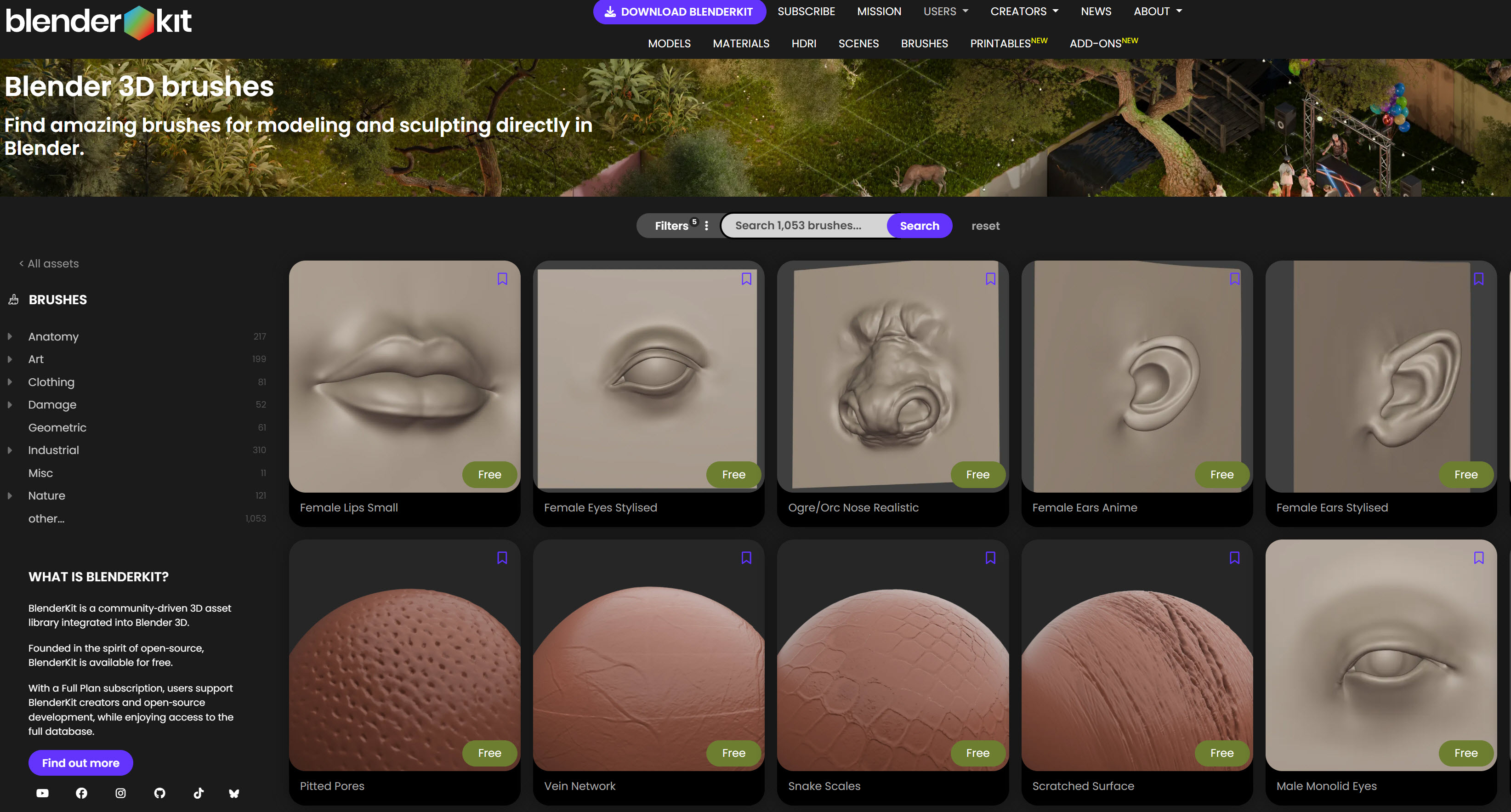 Blender 素材庫 BlenderKit 一直受到許多用戶歡迎,最近更開放下載超過一千件免費雕刻筆刷!