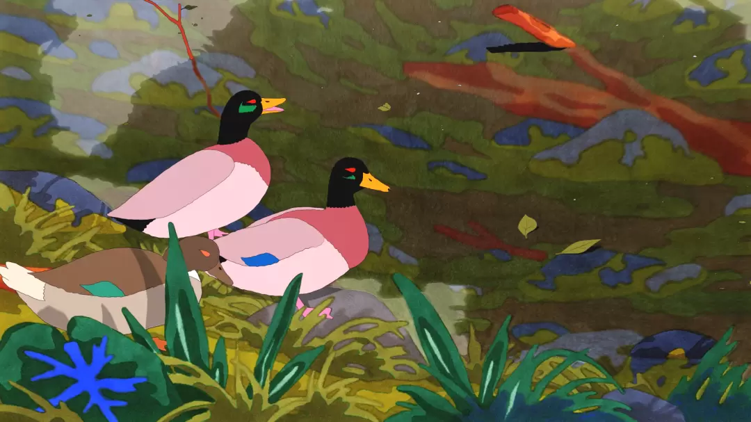 動畫短片《蜜蜂敲敲花》以栩栩如生的 3D 畫面,描繪小蜜蜂的天真與殘酷大環境的對比;《忘記時間的小屋》則以 14000 幅水彩稿完成逐格動畫,讓一棟 1870 年代建築化為主角,散發宛如經典繪本《小房子》的優雅感性。《撲通撲通的承諾》以童趣剪紙動畫,借螞蟻辛勤的形象,映照職業媽媽的堅韌;《青春手拉手》以藍綠色為基調,隨著光影的冷暖變化,勾勒青春成長的惆悵與堅定。混合媒材創作的《向前》,以魔幻寫實手法描繪母女如何在家庭離異後,重新尋找前行的方向。
