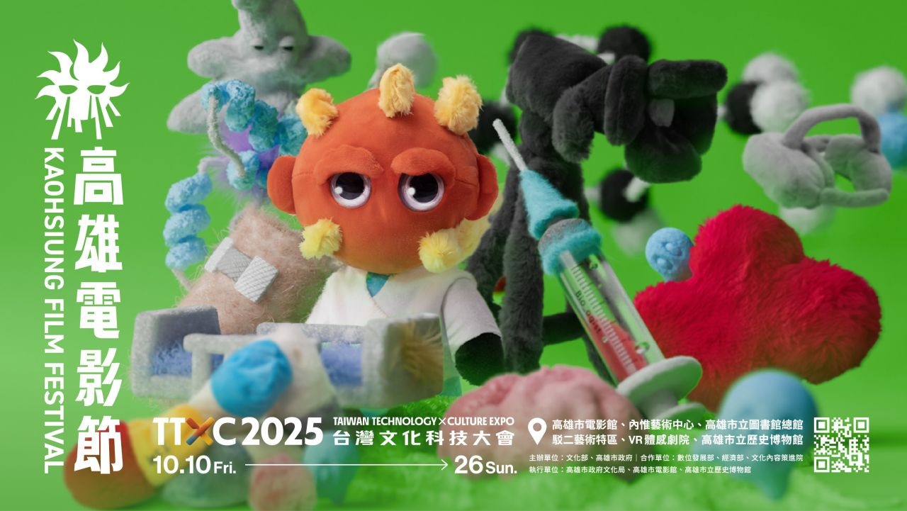 2025 高雄電影節年度主題「極度免疫」,絨毛玩偶創作設計師「Bio_ogist 生物學家」操刀主視覺打造「火球醫生」,挑戰在大銀幕跨越生理心理極限!
