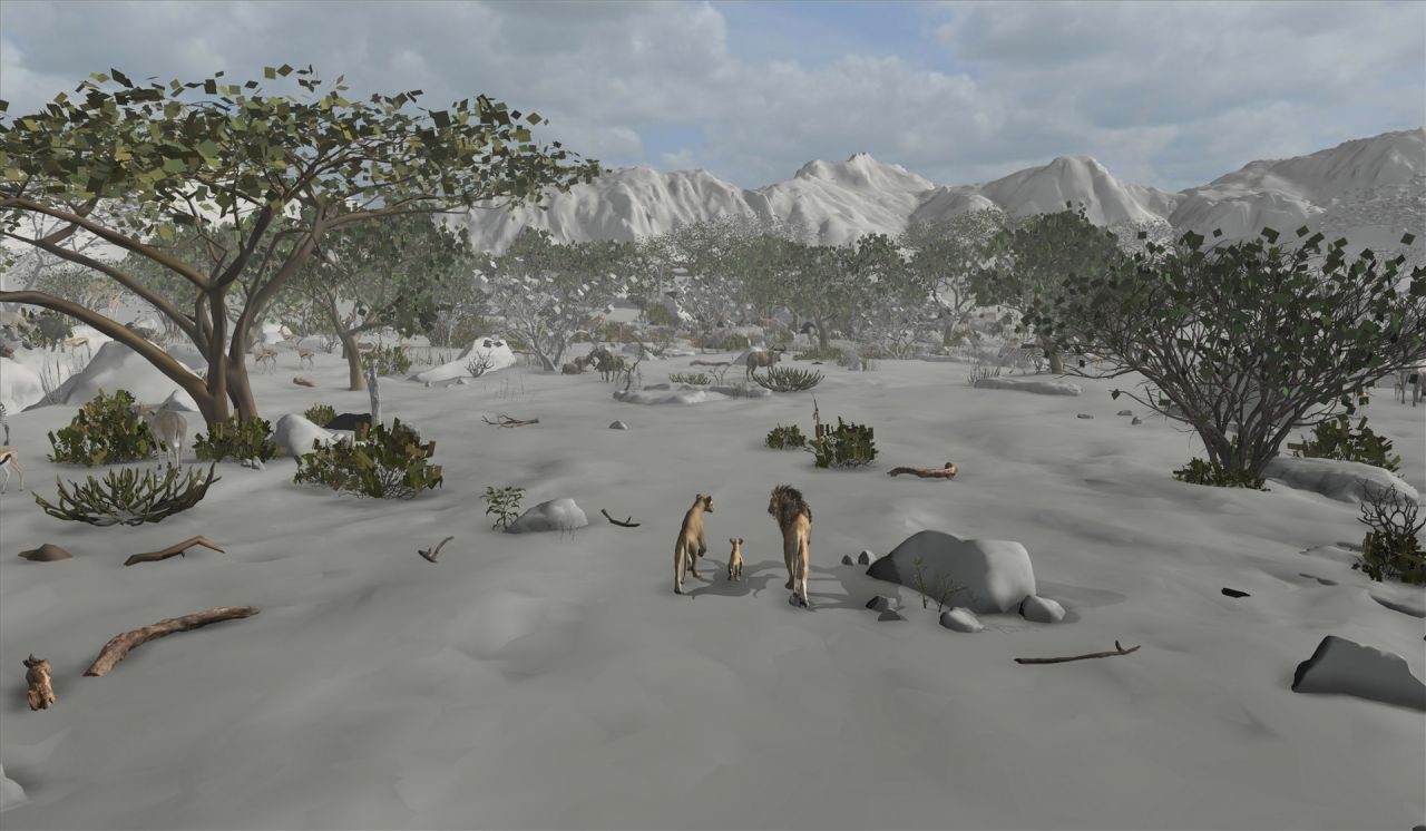 MPC 的視覺特效與動畫團隊橫跨四大洲,攜手完成了電影最終寫實的視覺特效與動畫製作。環境藝術家以非洲各地景點為靈感,結合實地考察素材,細膩重現非洲大陸的動植物群。MPC 使用攝影測量技術與手工雕刻,細緻打造平原、峽谷與森林,從岩石到花草無一不精雕細琢。透過客製的散佈工具,將河流、樹木與植物整合至場景中,模擬大自然的複雜性。