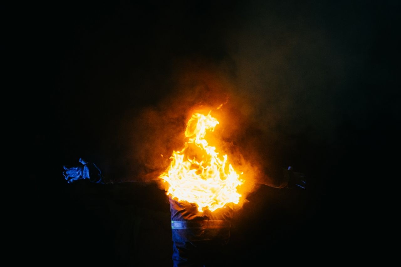 過去拍攝人身火效,通常會讓演員穿上浸濕的純棉長袖長褲,避免衣物燃燒後沾黏皮膚。套上一層濕牛仔褲,點火部位再特別穿上石綿製作的衣服,最後才穿戲服。戲服一樣打濕。暴露在外的頭髮、眉毛會塗上厚厚一層潤滑液 KY,降低燃燒時的灼熱感。接著在身上塗上強力膠作為燃料。強力膠雖然具有毒性,但燒出來的火焰色彩鮮明,視覺效果難以取代。