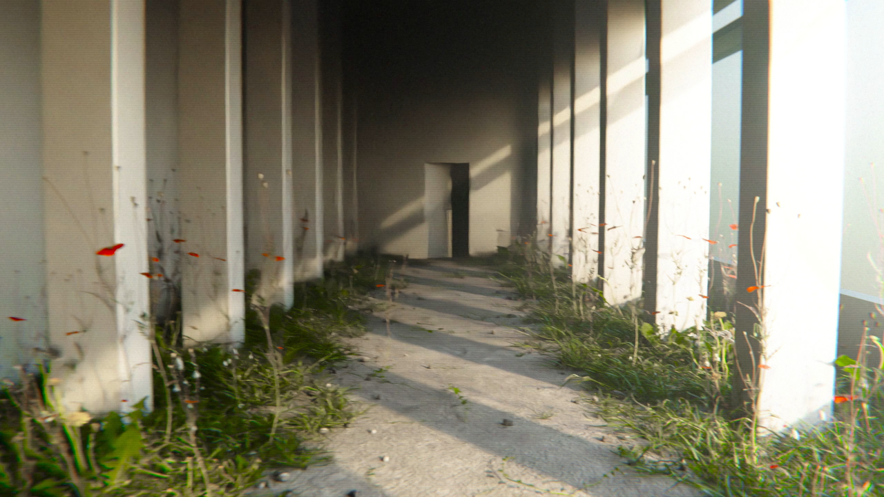 穿過隧道後,首先映入眼簾的是一座巨大遊樂場,內部除了設有溜滑梯與攀爬架等設施,球池的彩球更是多到「球山球海」。隨著鏡頭移動,POV 與成千上萬顆彩球產生碰撞,使其如同海浪般向四周散開,畫面極具動感。為了處理如此大量的 3D 物件,「物理模擬」成為莊水最大的挑戰,他坦言:「雖然我經常使用 Blender 創作,但物理模擬卻不是特別擅長的領域。幸虧前期找到了能實現碰撞效果的外掛 RBDLab,經過多次調整優化,最終才讓我實現理想中的效果。」莊水透露,儘管這段創作過程面臨了諸多挑戰,卻也讓他備感成就。