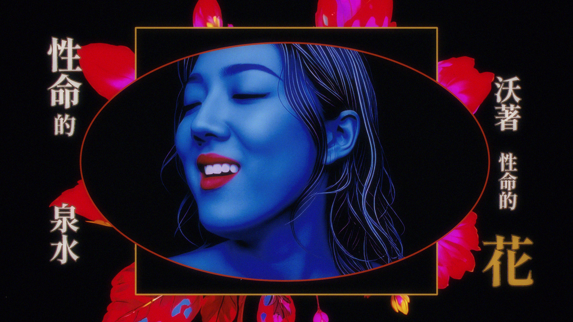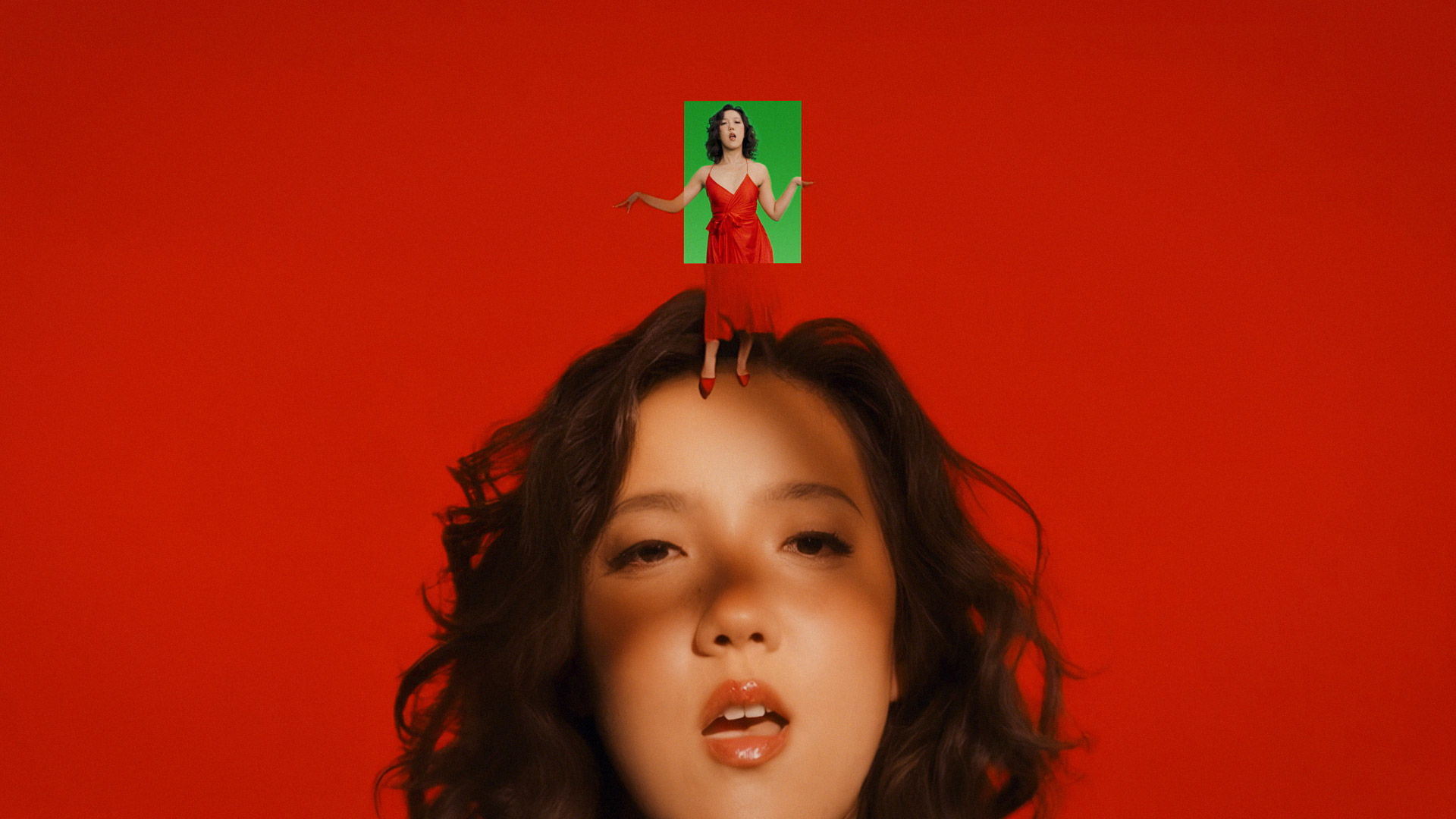 MV 中李竺芯呈現的藍臉紅唇形象,是在前期階段就已確立的視覺方向。「我們在製作初期就設定了許多風格,包括她的膚色。」團隊曾嘗試過藍色與橘色,最終選擇以藍色作為主要基調。