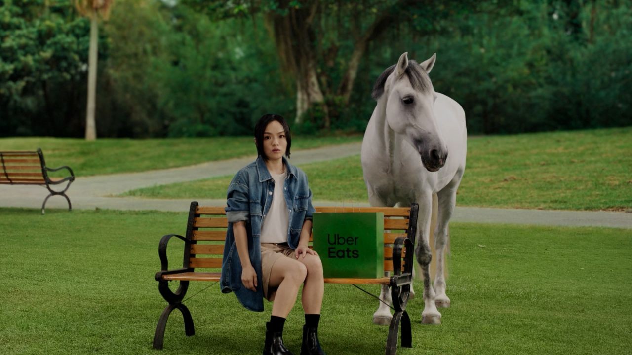 這次的經驗相當有趣,因為我們從馴馬師那裡學到了很多,了解了馬匹的脾氣和喜好。原本腳本中有許多動作會需要激怒牠,或引發劇烈情緒才會產生,但這樣的做法可能會造成虐待動物的問題因此無法執行。Uber Eats 也特別要求我們不得進行任何虐待動物的行為,甚至派人到拍攝現場進行監督。因此,整個拍攝過程都是在非常安全且不涉及虐待動物的情況下完成的。
