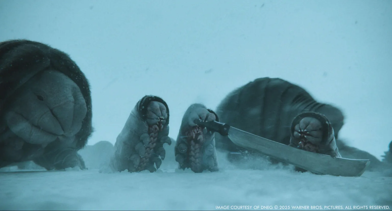 在《米奇 17 號》劇情當中,有許多冰原上強風徐徐的畫面,需透過伏蟲的毛髮模擬來符合劇中氛圍,而毛髮模擬以 Houdini 製作效果比起 Maya 內建的 nHair 更快且效果更好。楊顓瑋進一步說明,在 2020 年代 Houdini 已經成為模擬製作的主流工具,不同工作室會依據需求,選擇適合的技術製作模擬。例如,數字王國 Digital Domain 便運用 Houdini 為《復仇者聯盟 4》的薩諾斯進行肌肉模擬,達到與 DNEG 的 Ziva Dynamics 相當的肌肉模擬效果。