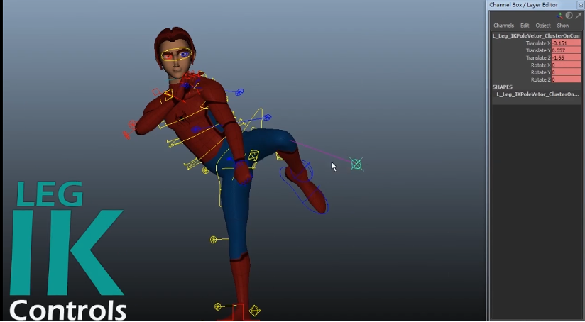 他補充 FK 與 IK 在角色表演上各有優勢。FK 以旋轉為主要運動方式,特別適合製作帶有弧度的運動軌跡。以走路擺動手臂為例,只需控制肩膀的旋轉,就有很漂亮的擺動弧度 。相對的,Maya 在計算 IK 位置資訊時,採用一個點到另一個點,最短直線路徑。若使用 IK 製作走路時的手擺動,當手從身後揮到身前,手會以平移呈現,需額外加入更多關鍵格(Key Frame)才能製作出流暢的手擺動弧度,較為耗時。