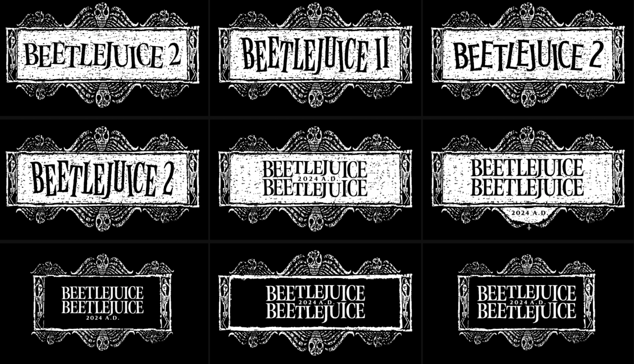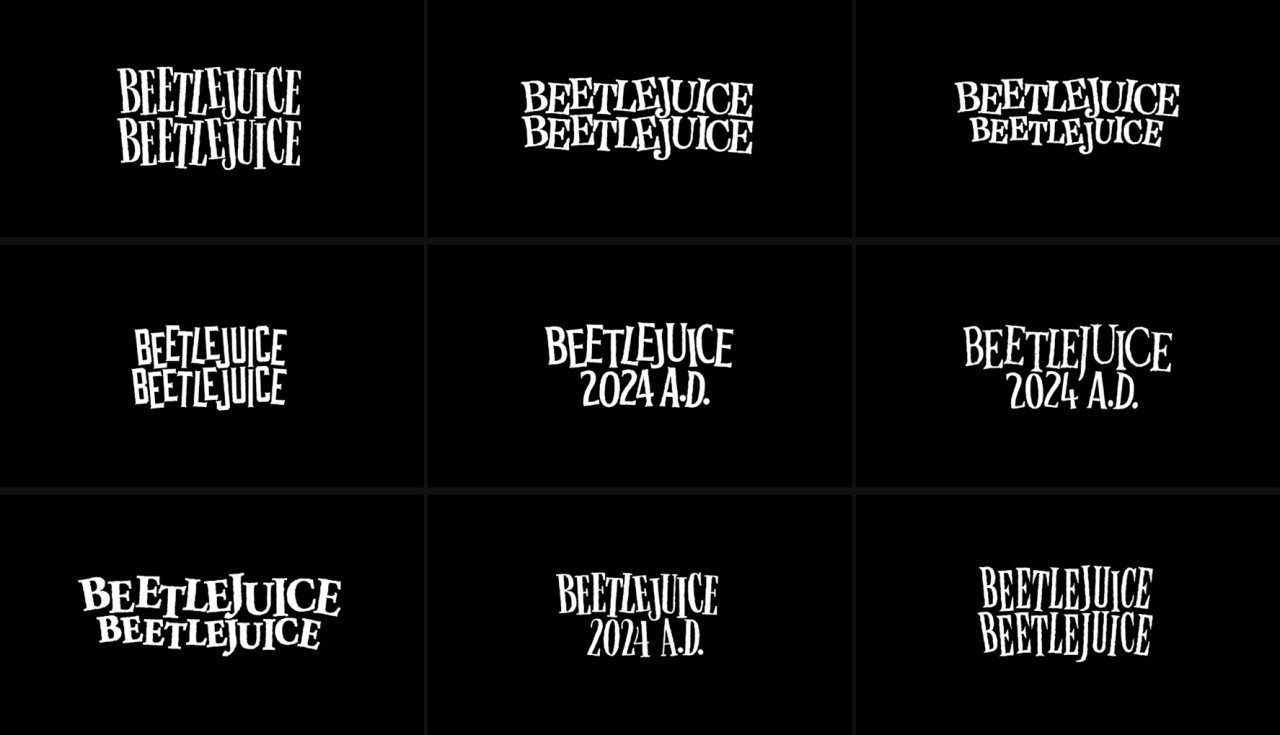 《陰間大法師 2》(Beetlejuice Beetlejuice)專案就是一個非常典型的「字體主導」型片頭。陳麗宇在當中負責電影主標的字體探索,以及後續的排版延伸。專案團隊選用了詭譎、細長的字體,保留了第一集的視覺特徵,但又帶點俏皮排列感的排版,同時融合當代設計語彙,從選字、排列到特效質感的設定,最終都要呈現出不同的風格變奏—可以怪、可以詼諧,但最重要的是和導演提姆波頓(Tim Burton)的美學完美融合在一起。