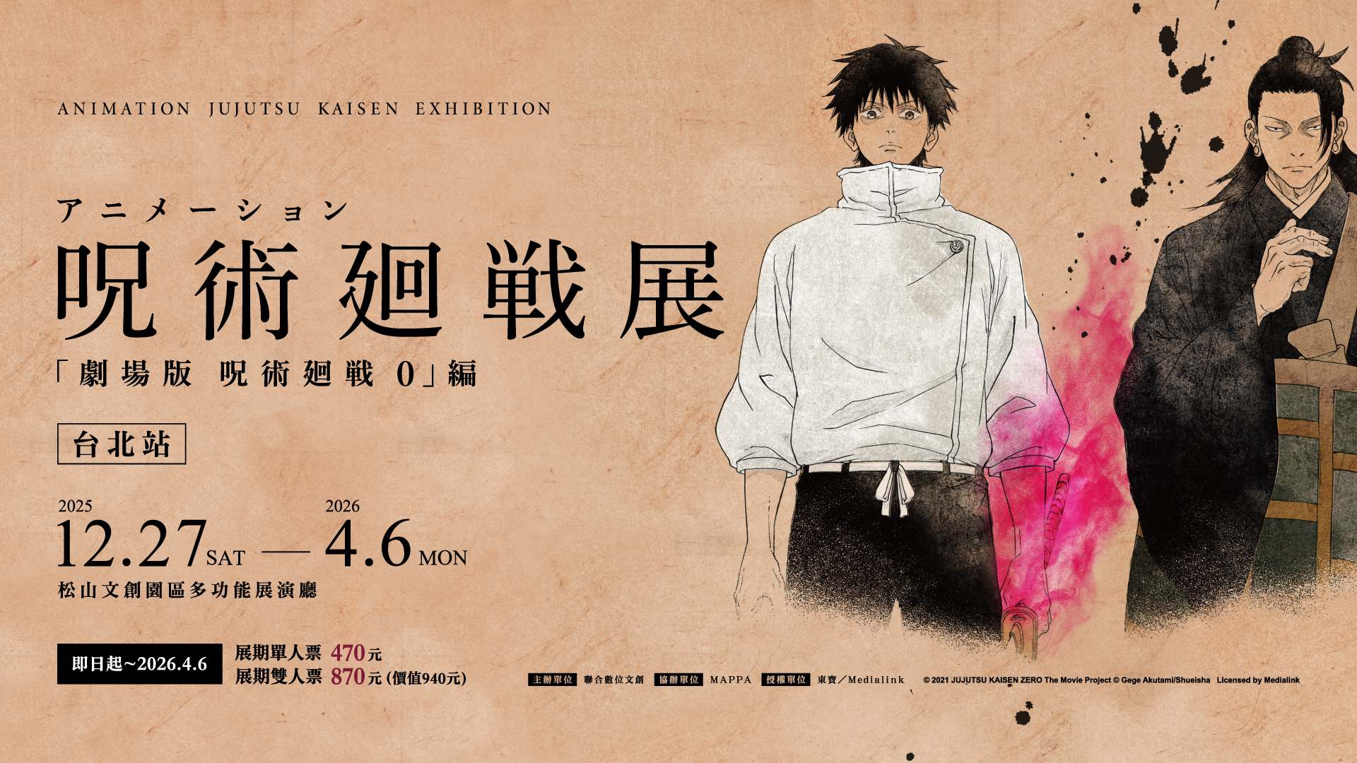 2025 年 12 月,這股咒力已降臨台灣,「咒術迴戰展《劇場版咒術 0》篇」,將在台北松山文創園區多功能展演廳盛大登場,完整重現劇場版的熱血場景與角色魅力。粉絲們將親臨咒力滿載的世界,近距離欣賞劇場版的珍貴幕後創作資料、「最強咒術師」五條悟 1:1 模型與多款咒具神還原展示,更特別的是,展覽更加碼展出動畫第 1 季與第 2 季「懷玉・玉折」篇的精彩內容,同時也邀請到日本知名水墨畫家こうじょう雅之 (Kojo_masayuki),以獨樹一幟的筆墨技法重新詮釋角色風貌,帶來與動畫、漫畫截然不同的視覺震撼體驗。