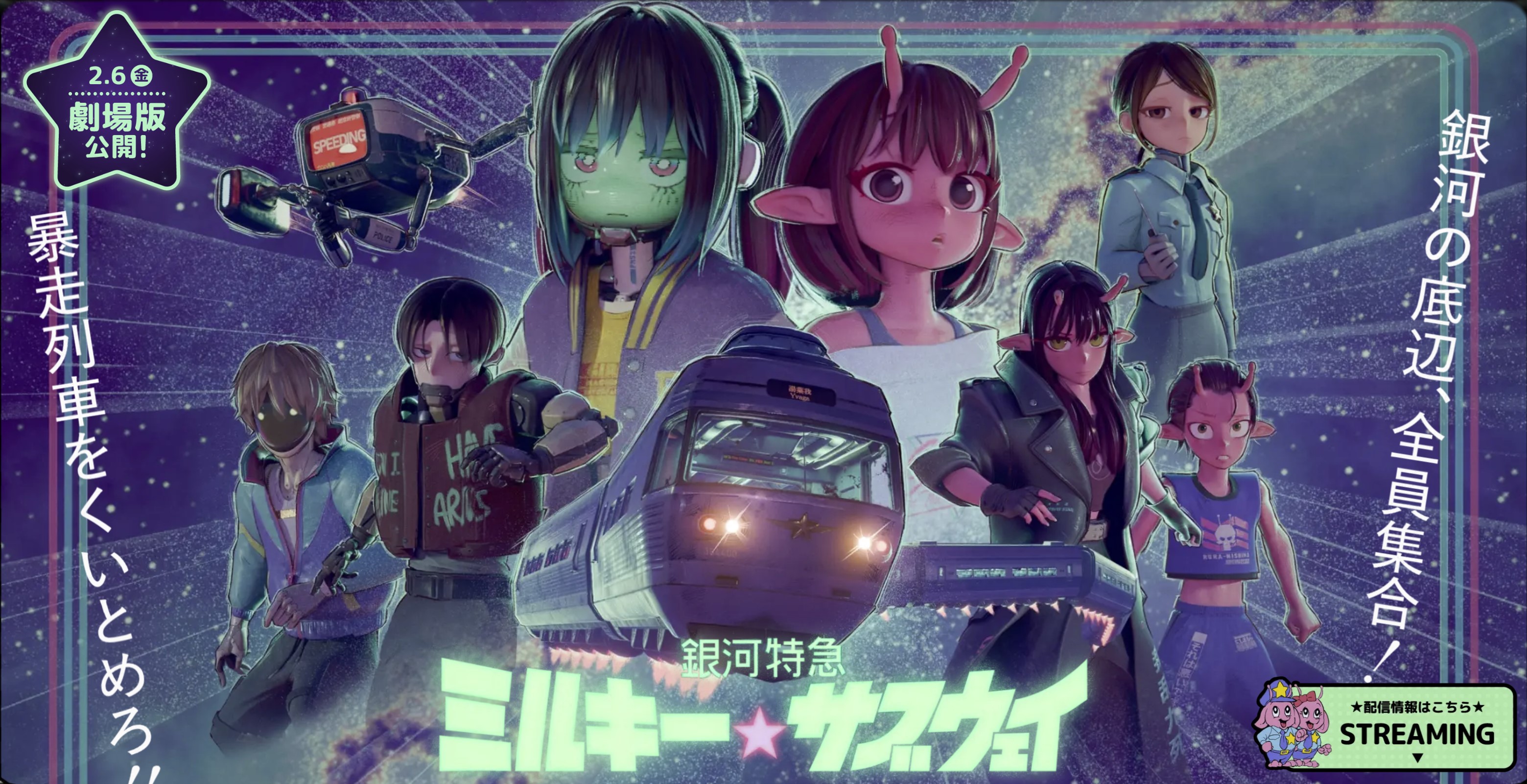 獨立動畫師亀山陽平在三年內之內幾乎以一己之力完成了十二支系列動畫短片《銀河特快車 Milky☆Subway》,YouTube 頻道總觀看次數突破一億五千萬次。故事聚焦在一群因違反交通法而被指派從事社會服務的強化人、改造人,在清掃跨行星運行的列車時列車突然失控,陷入混亂風波中。導演亀山陽平表示,劇場版重新剪輯十二集短篇動畫,並加上全新片段,以更完整、升級的姿態登上大螢幕。