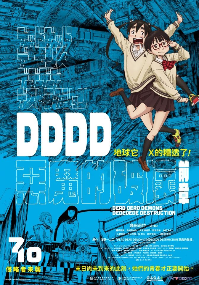 日本動畫電影《DDDD 惡魔的破壞》改編自人氣漫畫家淺野一二O的同名作品,由《PSYCHO-PASS心靈判官》系列、《我們的黎明》知名動畫導演黒川智之操刀,搭檔《紫羅蘭永恆花園》、《聲之形》資深動畫編劇吉田玲子構築劇本。《DDDD 惡魔的破壞》分為前章及後章上檔,片中末日科幻世界觀,帶著跳躍線性時空奇想的劇情,猶如日本動畫版《媽的多重宇宙》!先前在日本推出前章,隨即獲得動畫大師新海誠在 X(Twitter)發文盛讚,台灣也將在 7 月 10 日推出前章,後章於 7 月 24 日相隔兩週接力上檔,期盼已久的影迷們可以一飽眼福!