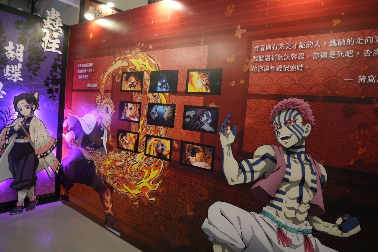 穿過入口拱門後,是《竈門炭治郎立志篇》、《無限列車篇》、《遊郭篇》、《刀匠村篇》及《柱訓練篇》各季動畫的專屬區域,除了再次感受故事魅力,還可以透過各段經典台詞與場景圖,重溫劇情中的熱血與感動。作為最終決戰舞台的「無限城」,在這次快閃店中也將以獨立空間及商售區揭露部分面貌,而作品中鬼殺隊戰力最高指標的九柱們也全員到齊,以等身比例在各展區中歡迎大家的到來。