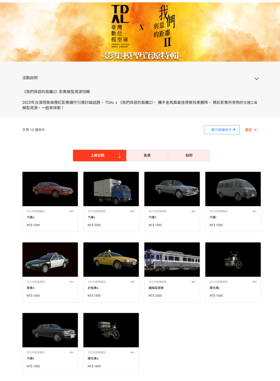 「TDAL 臺灣數位模型庫」致力於建構具臺灣特色的數位模型資源平台。也經常與強檔國片、臺劇合作,提供影視等級的 3D 模型供大家購買使用。當中不乏有不同年代的街道與建築、交通載具與道具的高擬真模型,也成為國內創作者在創作中展現細節的一大助力。