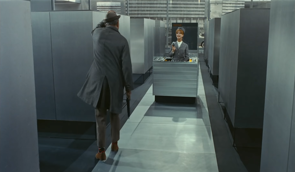 該電影同樣也是法國導演賈克大地執導,而為了拍攝本片,賈克大地堅持為電影搭建出龐大的城市造景而負債,拍攝時間勝橫跨了三年之久。電影的故事分成六段,主要聚焦在一位美國觀光客芭芭拉來到巴黎觀光,與一位在巴黎城市中迷路的法國男子相遇,有趣的是,隨著場景變化,兩人卻不斷地相遇。電影以其眾多、特殊的建築物布景與背景知名,並稱之為「大地城」(Tativille),而就如同《巴黎舅舅》一樣,電影涉及了傳統建築的破壞,超現代建築,現代城市化以及進入機械秩序的商業世界。導演觀察到西方文明對消費對象的偏愛,以及現代社會的緊張氣氛。另外,導演也提及太空技術冷酷無用的面貌。