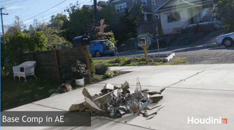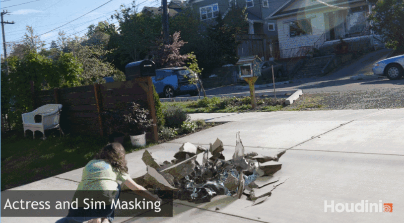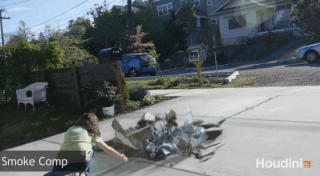 在該作品中,Kavi Dey 找來姐姐作為主要演員,並用 Syntheyes 進行拍攝與攝影追蹤。之後在 Blender 建製地面的混凝土模型和紋理,並將拍攝畫面與地面模型作為 Houdini 的 Alembic 導出。在 Houdini 中,Kavi Dey 創建冰塊,並添加到地面破裂模擬中。接著,添加一些煙霧和粒子,讓畫面更真實。在三次渲染設置檢查後,才開始渲染。Kavi Dey 提到:「這是我在 Houdini 創作的第一個作品,雖然遇到很多困難,但我會試圖解決問題,例如去論壇問其他創作者,這裡我要推薦 Houdini 和 OdForce 論壇。」經過漫長的渲染後,緊接著是合成。像是執行轉描機 (rotoscoped) 及色彩校正,並試圖將其組合。最後,他也提到一個很重要的點,就是剪輯作品的幕後製作影片,並再次報名比賽!