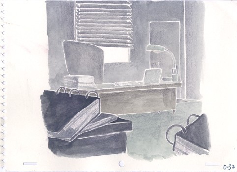 背景在電腦繪製構圖,塗黑印出後,利用光桌在水彩紙上,使用水彩與色鉛筆繪製彩色背景。