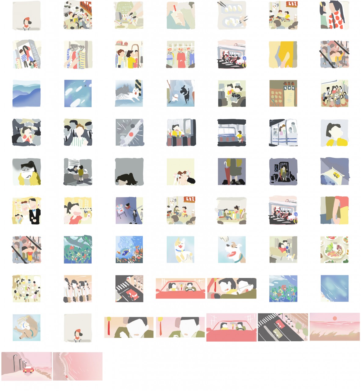 「改變畫面比」一直是我創作動畫很感興趣的⼀部分。在觀看電影《令人討厭松子的一生》後,不同的畫面比帶給觀眾的感覺也不同,這概念讓我倍感興趣。像《多幾咧?》中的正方形比例有點像是回憶,所以我也用手持攝影機畫面來加強這個感覺。而當故事進到現實時,畫面比轉變為電影院放映的比例,就像觀眾們正在觀看主角們的人生故事,最後當她做出了決定, 畫面完全地展開,讓故事的未來有了無限的可能。除了畫面比的變化外,角色的外型也隨之改變︔從回憶中可愛的樣貌轉變為更加寫實的身體比例,暗示著生活從主角的回憶樣貌終於轉變為現實,並不畏懼地往前走。當然這都只是理論,會這樣玩的原因也是直覺可行,觀眾如何去解釋、感受才是最重要的。