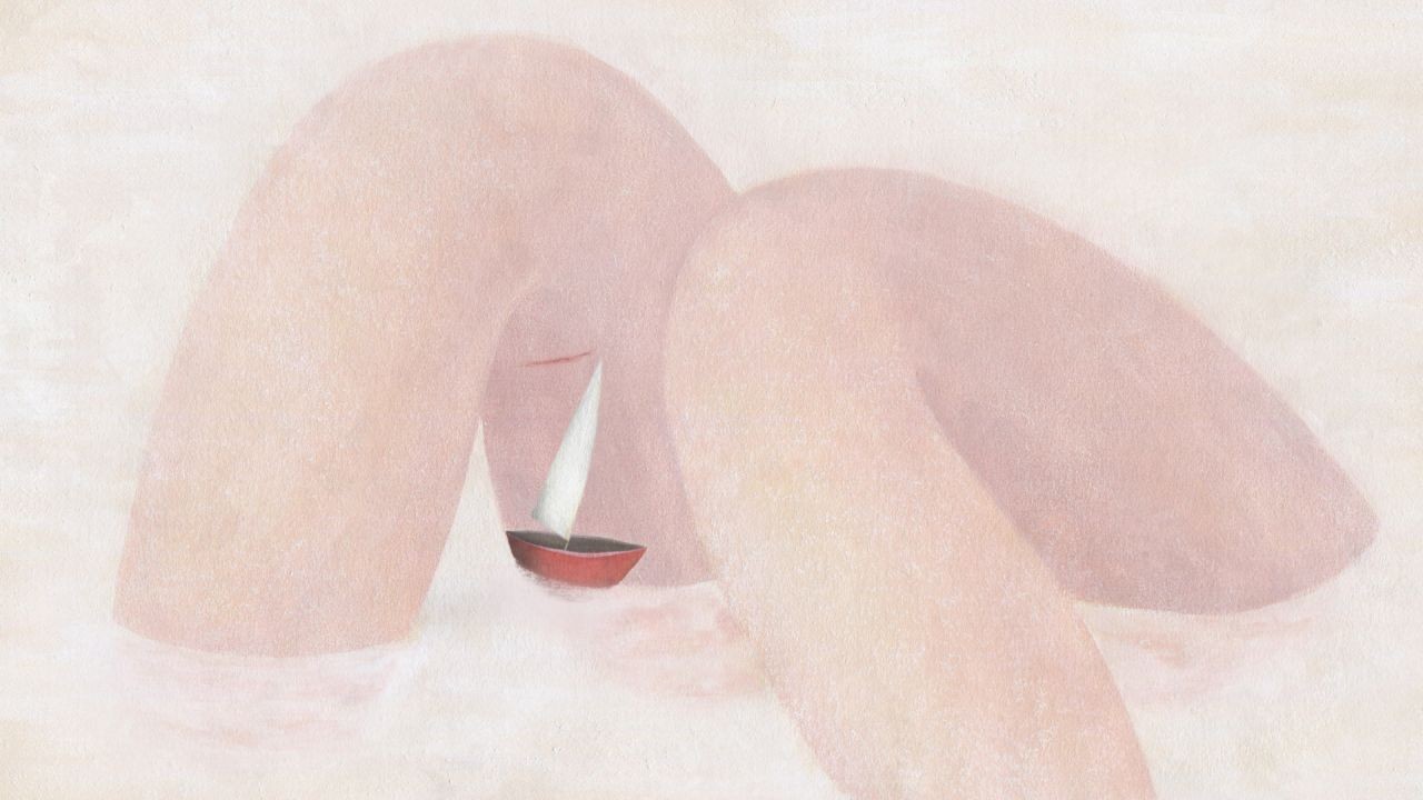 回憶是一個無法抗拒的狀態,以島嶼及帆船象徵女孩的傷痛
