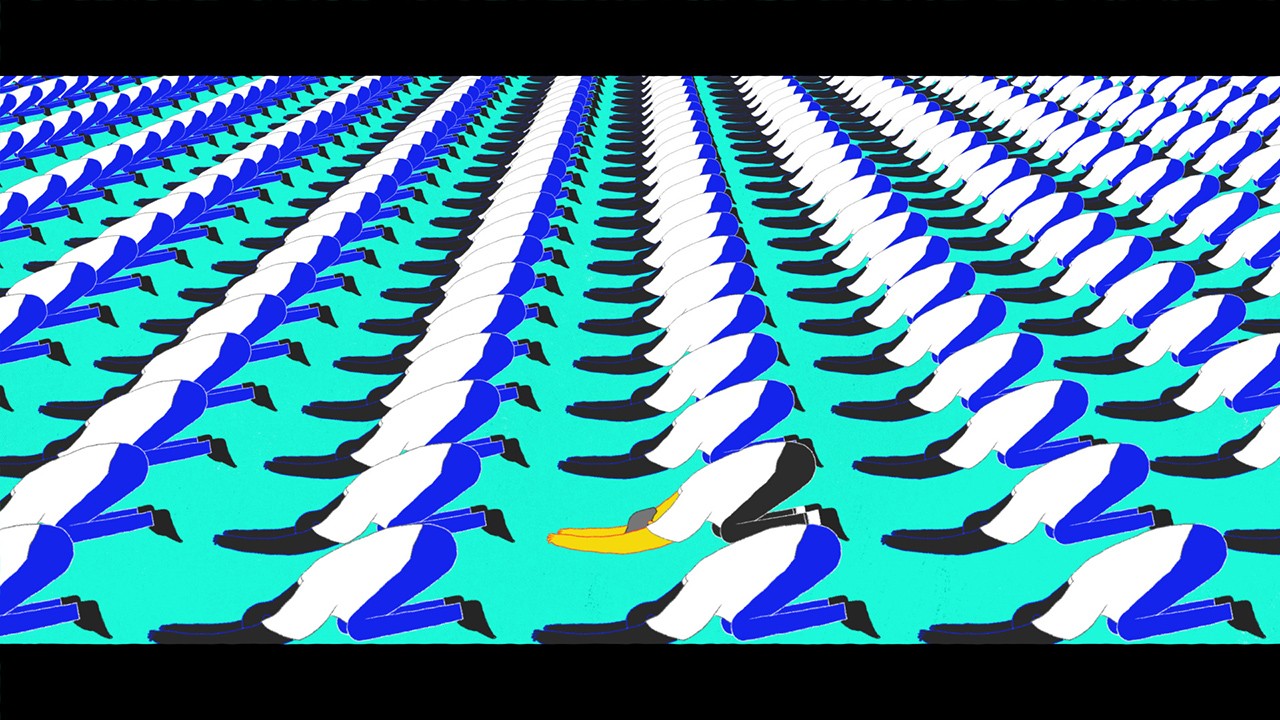 在動畫的開頭與結尾選擇使用同一個場景,導演也在動畫開頭的一連串的場景轉換裡藏了一點小巧思,將男孩日復一日的上班生活;兩點一線的移動軌跡,透過電梯、捷運車廂、虛擬的網路空間、家中場景至魚缸等一連串的鏡頭畫面,描繪男孩在現實空間中不斷於許多形態各異、大小不一、有形或無形的容器間來回游動。這些容器不管如何巨大,甚至看不見邊際,仍舊還是有其框架,就如同現實生活中那有形無形的宗教信仰、道德倫理、社會價值觀、刻板印象等對個人產生的條條框框那般,看不見卻無所不在。