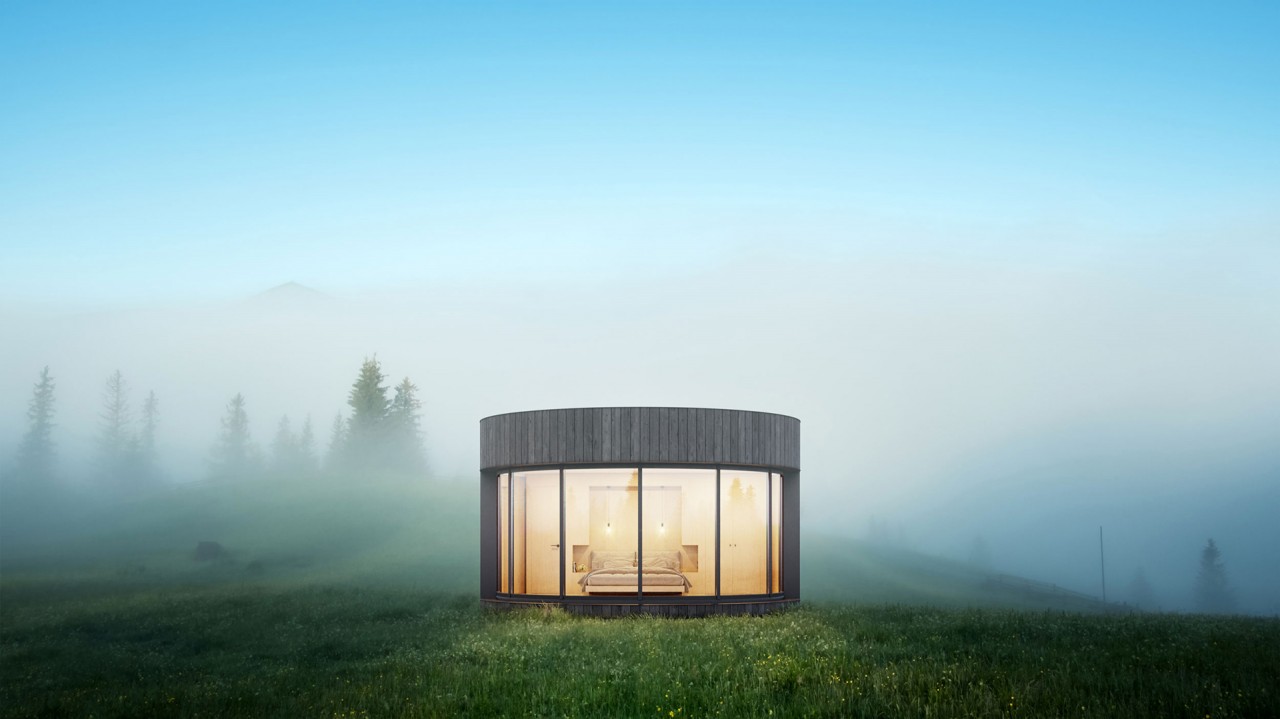 這個專案的主要概念是「歡迎城市居民願意遠離都市叢林,來到這個靜閒的場所。」畢竟越來越多的現代人開始追求高品質生活並注重環境保育的觀念。 時尚嬌小的建築空間變得越來越普遍,因為它有建造保證,價格低廉,維護成本低,對環境的影響也最小。在我看來,對於那些尋找度假空間或旅遊民宿的人來說,《LumiPod》一個很好的選擇,它像是自然空間會有的建築,仿佛旅客就是自然環境的一部分。 想像一下,在森林中央、俯瞰大海或鳥瞰山下風光是多麼讓人放鬆、舒適的事。於是我們開發一個預鑄式的房屋模組,並被 Lumicene 建造的窗戶圍繞,讓房屋處於大自然中。這個建築還有一些基本的配置,例如: