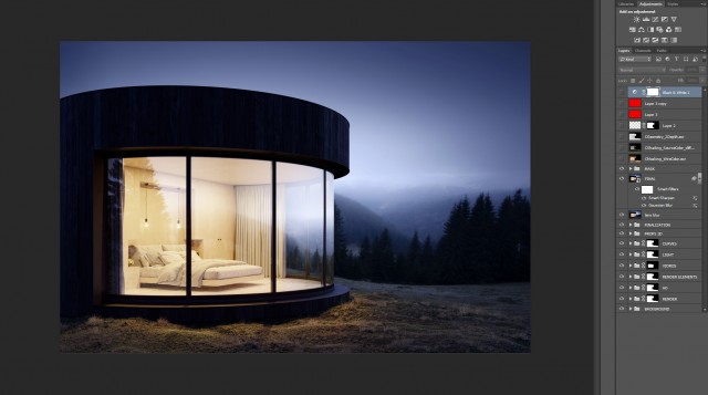 這次設計的8個建築圖像都是用Corona Renderer 軟體快速渲染而成,尤其是《LumiPod》偏小的這個圖像。另一點,我們總是抓取最適合的拍攝角度,來平衡圖像中每個細節。 這原則使我們能夠加快工作流程並縮短渲染時間。在後期製作階段,我們會先完成一張良好的「原始」渲染,再根據參考圖像進行些微調整,也經常調整對比度,白平衡,飽和度,反射等數值。另外特別提及 CoronaMultiMap 和 CoronaUvwRandomizer ,LightMix 的位移修正與內存優化功能,它們非常好用。