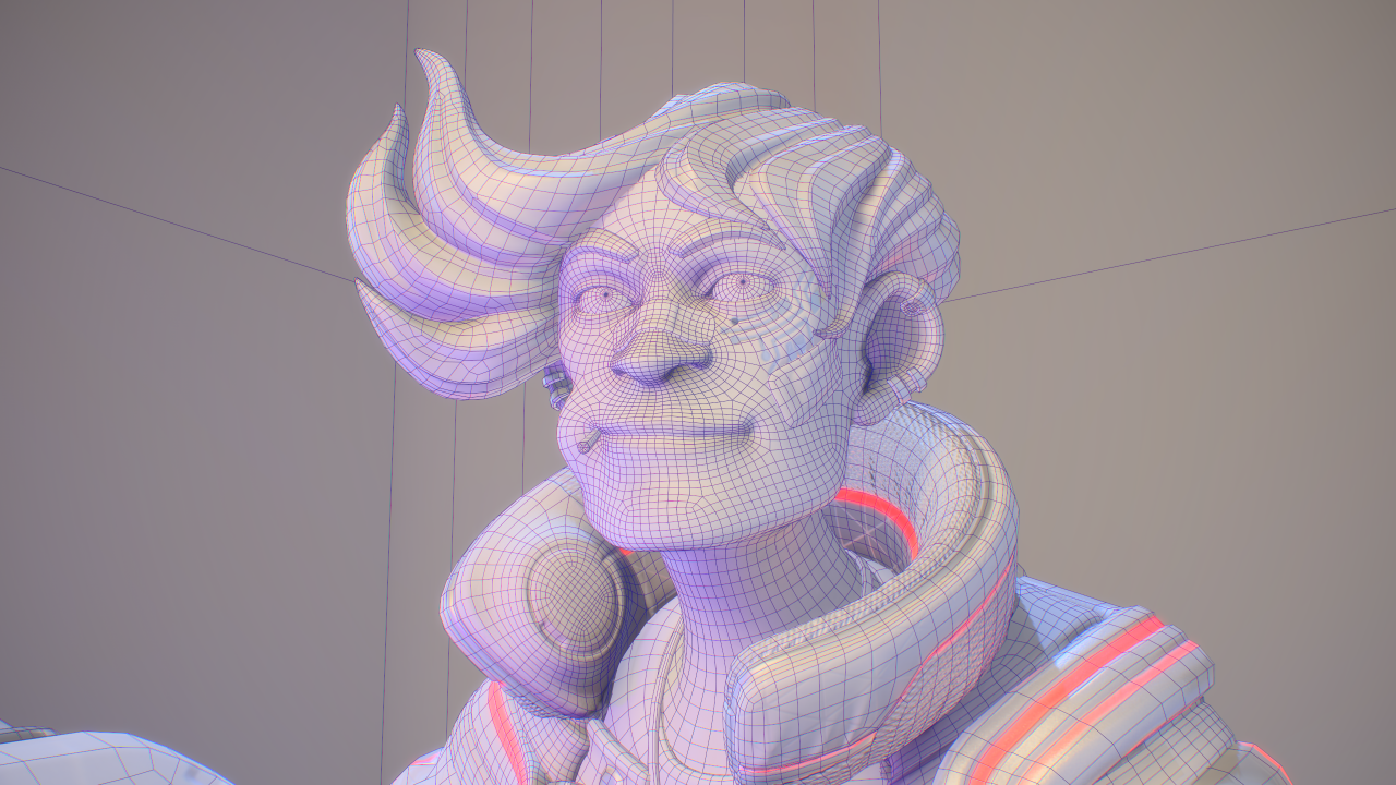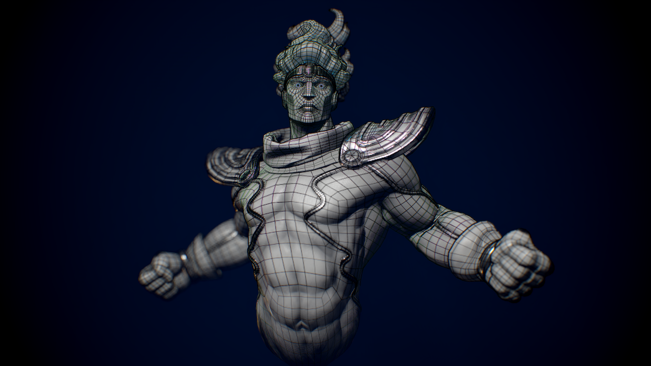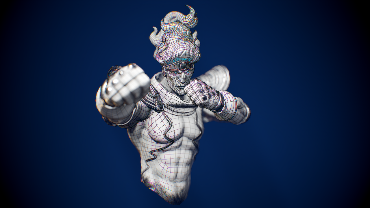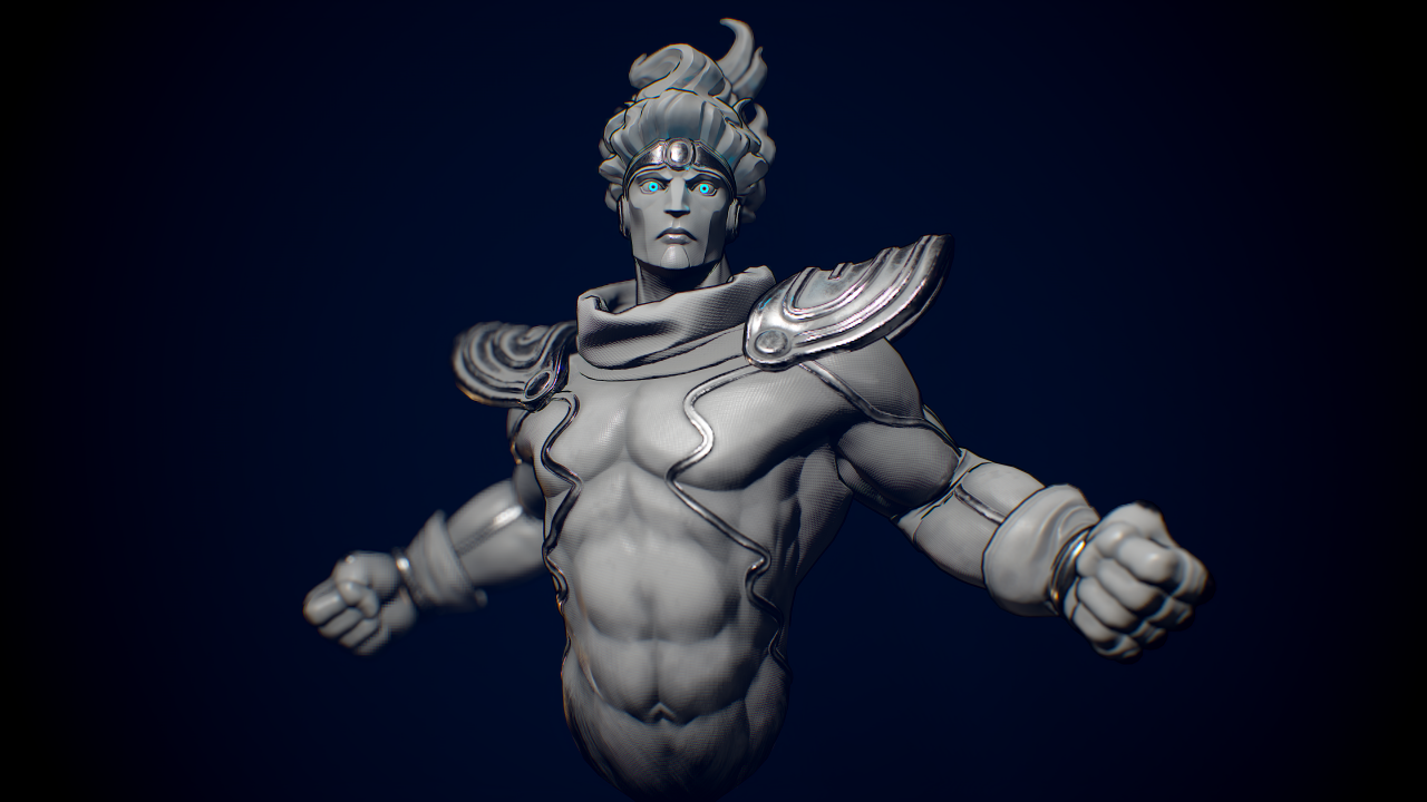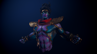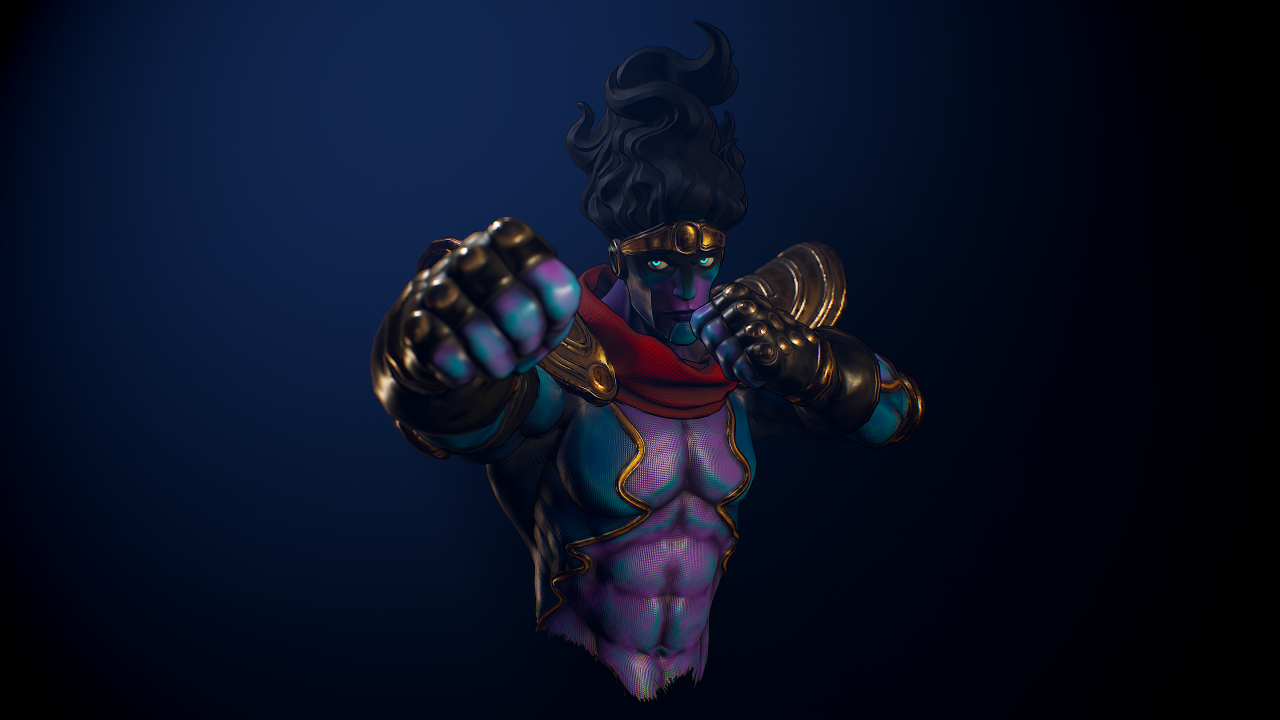 Marco Vergantini:材質貼圖是個很有趣的部份,我可不想要做出一個「沒穿衣服的藍皮膚老兄」,我想他皮膚上的布料貼圖應該可以造成一種很獨特的橡膠或乙太的感覺。
