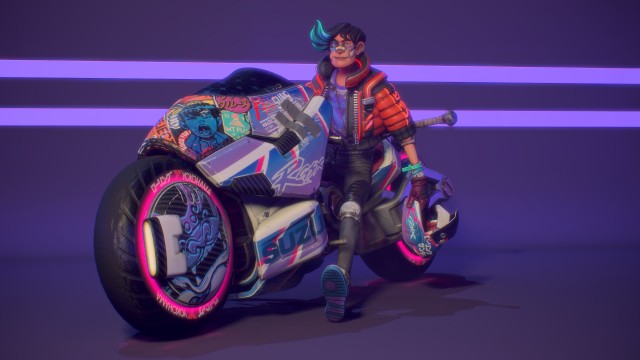 要製作一個非寫實的角色並不難,但要製作非寫實的摩托車,尤其還不能看起來太有喜感或太怪異的,難度就很高了,加上兩者精細的程度必須相當,否則畫面會看起來不一致。