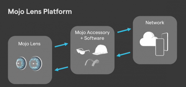 不僅如此,需要了解的是,在驚嘆 Mojo Lens 鏡片可以做到如此之小的同時,要知道它所能承載的資訊量會非常小,因此它也需要依靠類似智慧手機的配件作為支撐,並提供網路連接來實現某些功能。這些配件在形態上會有所不同,比如帽子、眼鏡、頸戴式配件,Mojo Lens 更多的是起顯示器的作用。