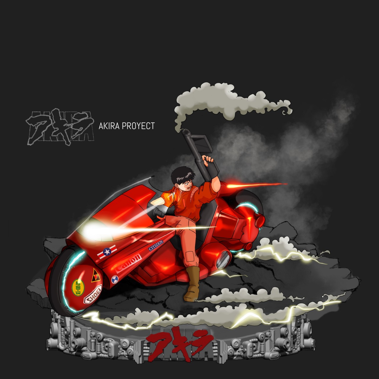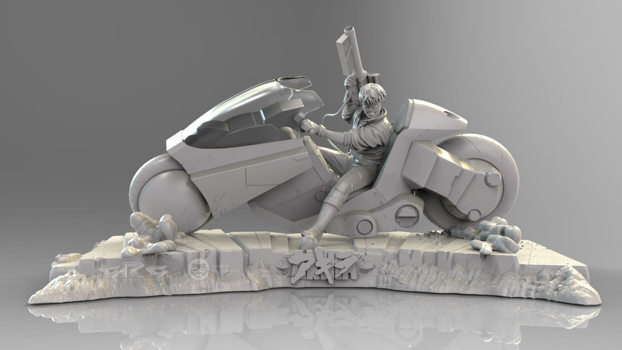 Ranyert:這個角色是根據電影《阿基拉》裡的主角金田正太郎所創造的。我是導演大友克洋的忠實粉絲,在一次私人委託的工作中,我打造了一個金田正太郎對決鐵雄的 2D 概念,客戶非常喜歡,所以就要我為兩位角色再製作 3D 雕塑的版本。我認為創作過程中最困難的是在軟體中重新製作他的摩托車的部分,客戶要求,他不希望作品看起來像個玩具,它要看起來很真實,所以我參考了大量的影像,去完成摩托車內部機械的部分。