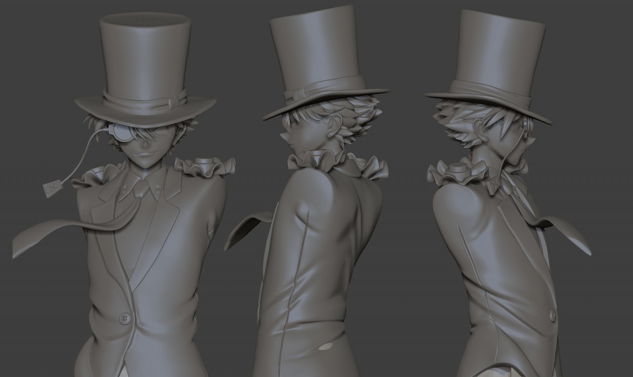 在這一個作品中最大的挑戰是臉部的設計,要讓他正面看起來很扁平、但側面看起來有稜有角,同時也要加上衣服和點綴材質。這些全部都是在 ZBrush 中完成,我大多不會去使用別的軟體。