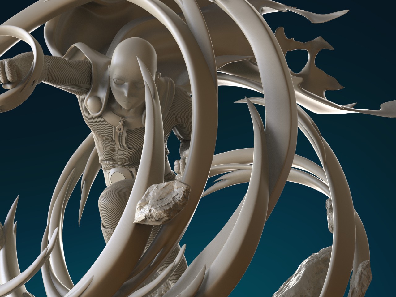 Ranyert:既然崎玉被稱為「一拳超人」,我們製作這個角色的時候當然最希望的就是讓他擺出他的招牌動作,一個拳頭直直地打向他的敵人。至於創作中最大的挑戰?就是做出他的光頭!要製作一個光頭真的比要做一個一頭長髮的人還要難上很多。