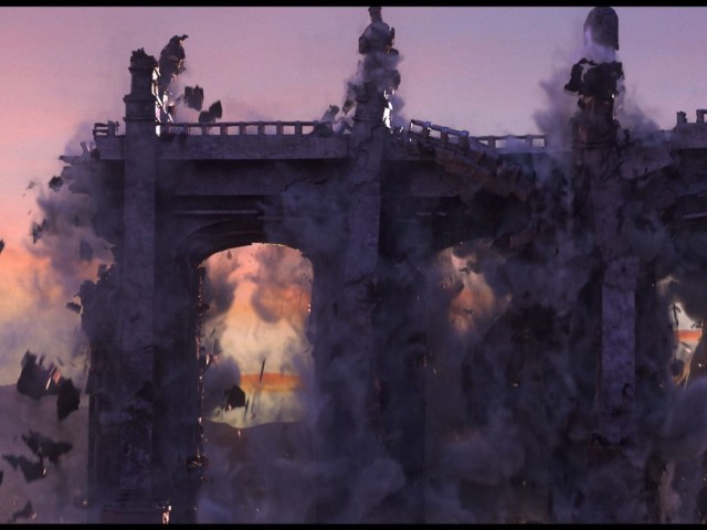 同樣由 Mariam Hamed 製作,靈感起源於《冰雪奇緣2》大壩破壞的畫面。該藝術家為所有的效果、Look Dev、苔蘚/草叢散射和磚塊建模。而橋樑建模和紋理化由 Dallas Palmer 完成。至於雕像和山脈,則是 Allen Kun 完成的。