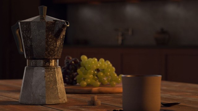 來自德國角色設計師 Simon de Payrebrune 創建而成。該藝術家想嘗試不經過任何紋理流程,製作一張靜物畫。場景中的所有細節都是透過 Redshift 程序著色功能完成。另外有些木頭紋理市採用 Quixel 素材庫。