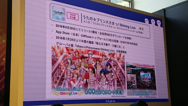 《歌之王子殿下》原為 2010 年日本 Broccoli 公司在 PSP 發售的戀愛冒險遊戲,在遊戲爆紅後,同年推出動畫後大受好評,成為橫跨遊戲、動漫與小說的知名IP。《歌之王子殿下♪ Shining Live》為 Broccoli 公司與 KLab 株式會社在 2017 年聯手打造的一款音樂女性向手遊,在日本已突破 500 萬下載量。在講座的一開始, KLab 株式會社項目經理畑山誠提到了在開發《歌之王子殿下♪ Shining Live》的六個關鍵