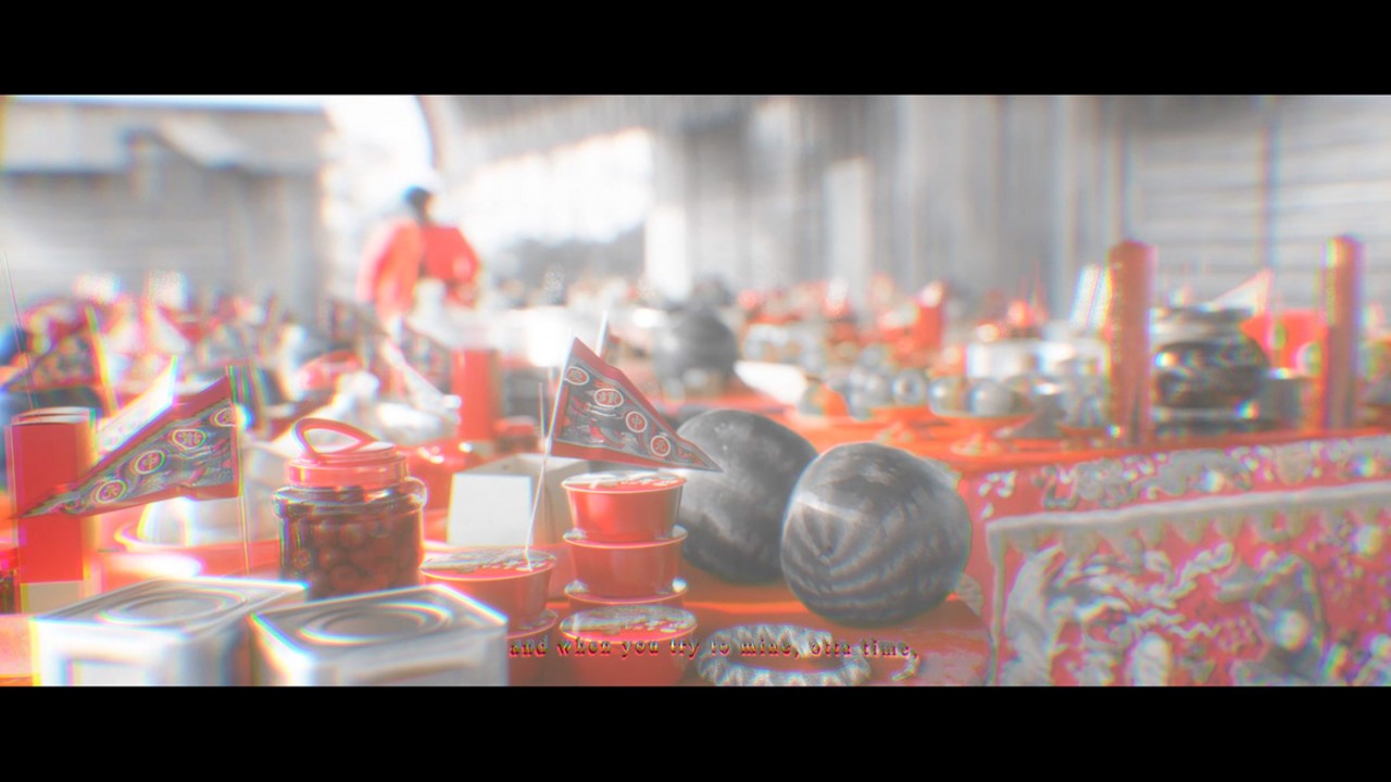 製作期間大約三個月,每個禮拜只有假日可以去製作一下,另外我們的時程壓得非常緊,每個禮拜就一定要搞定一個場景,我們也很清楚時間不夠,所以我們動態的製作沒有花太多時間,主要是靠運鏡和場景的精緻度去拉起作品的完整性。我們整體的流程大概是平日場景建模→假日整合模型、材質、運鏡、人物動畫→禮拜天離開工作室開始算圖,每個場景大約 12 小時內算完。