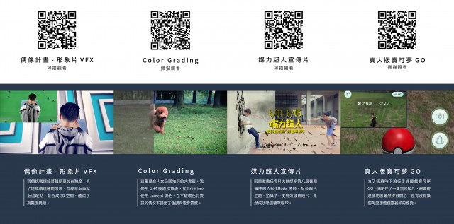 若你準備面試時,只在履歷表打上對某項軟體專精,其實很難讓人資快速認識你,我覺得直接準備一套作品集才是有說服力的。而且影片的準備與平面設計比較不一樣的是,因為影片是動態,如果要放在書面的作品集上,有幾種做法可以選擇,第一就是把分鏡切出來,讓人資看每個影片中的圖像。第二是附上QR CODE讓人資掃描,若你有建立網站的話,更能快速地看到作品內容。