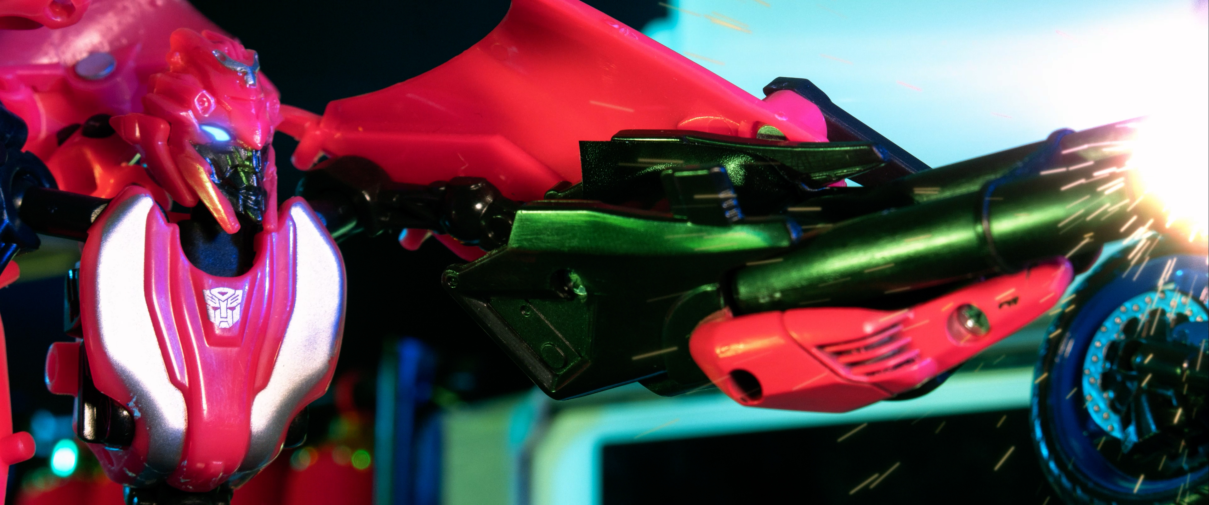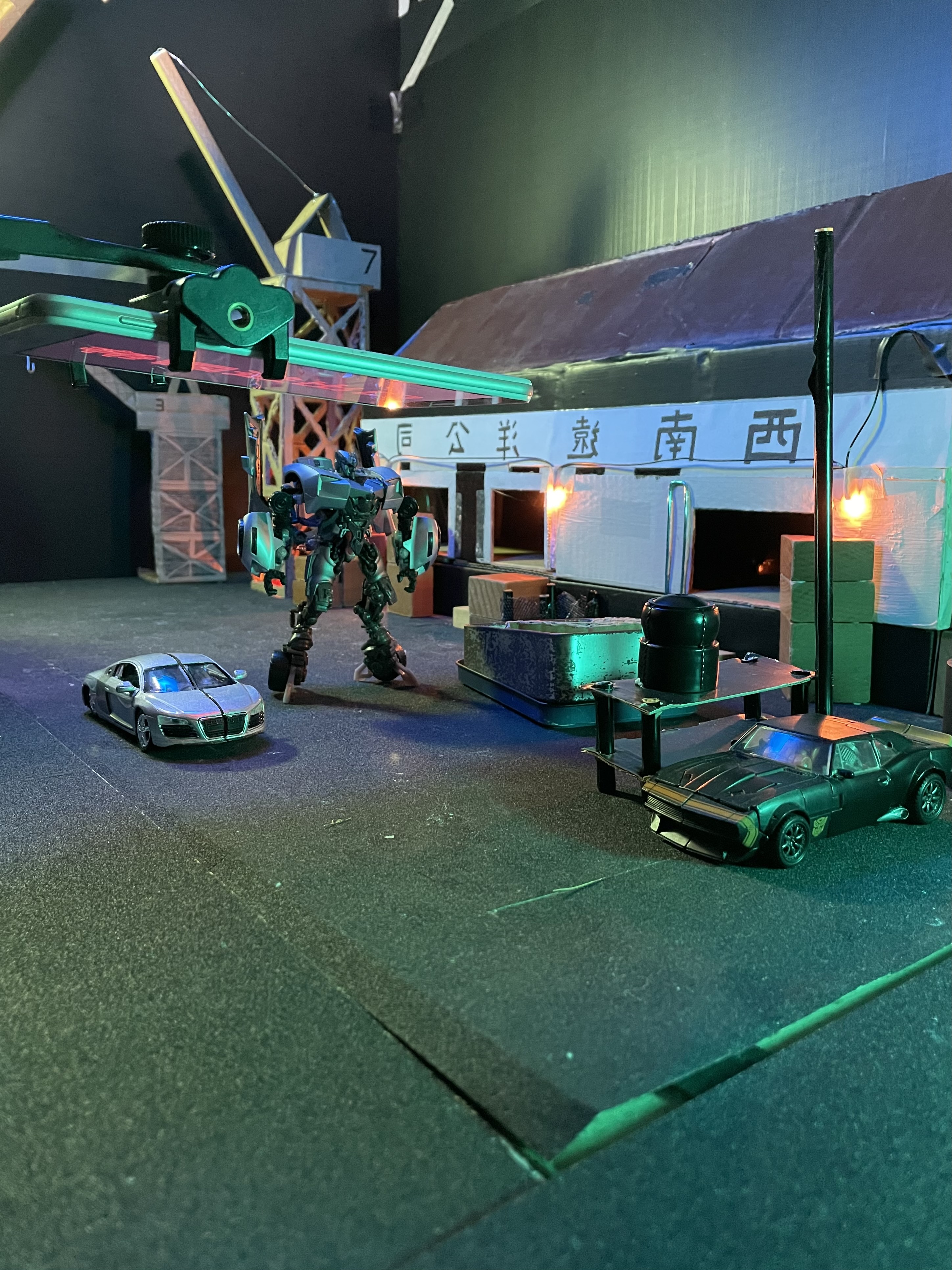 這種現實層面的挑戰,不僅體現在道具製作,也延伸至拍攝現場的突發考驗。在拍攝一顆將 Sideswipe 吊起的懸空鏡頭時,突如其來的地震險些毀掉整組精密設定;停格動畫的拍攝環境極度脆弱,任何微小的晃動都可能導致角色位移或支架崩塌。吳其寬回憶當時情況極其驚險,他憑藉直覺在第一時間伸手抓住模型,才免於毀滅性的墜毀命運,守住了這支鏡頭。
