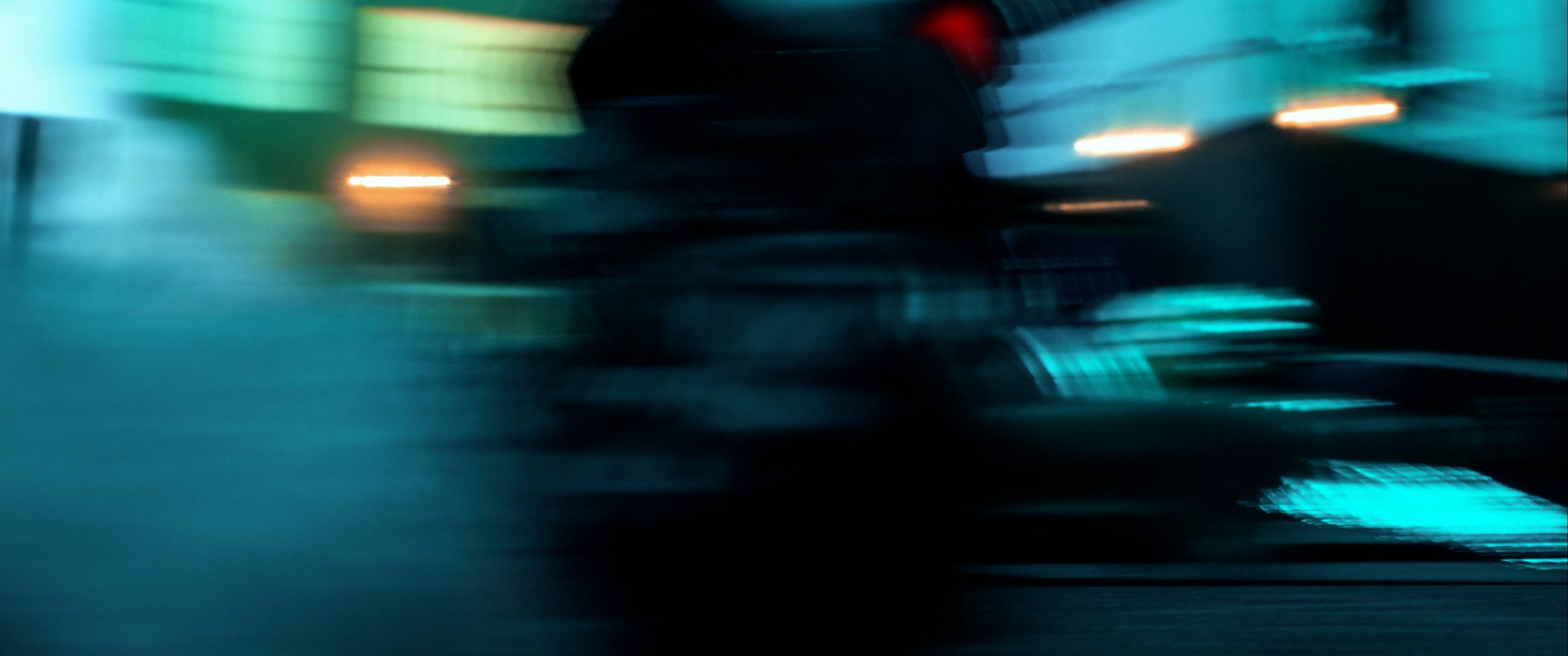 為了彌補視覺速度感的流失,他有時會讓前景物件往反方向位移,藉此製造出極速前進或背景深遠的空間假象。當物理空間的長度已無法容納場景時,他則利用調慢快門拍出的「動態模糊(Motion Blur)」作為巧妙的視覺媒介,在不同佈景間自然銜接,化空間侷限為流暢的轉場 。