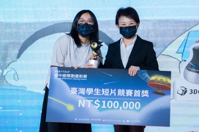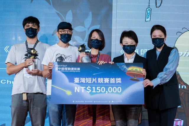 台中市長暨影視發展基金會董事長盧秀燕頒發最受矚目的台灣競賽的兩項首獎。盧市長表示,此屆動畫短片競賽作品徵件創下歴屆新高,其中台灣投件的動畫作品超過400部,可顯見台灣動畫創作能量豐沛,無論是創作媒材或多元議題表現,都相當令人驚豔。市長也強調台中市政府會持續支持推動「臺中國際動畫影展」,讓更多國內外動畫創作者把台中做為動畫作品能在亞洲曝光最重要的舞臺。
