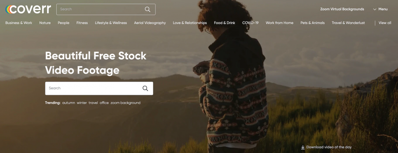 Coverr 提供大量的免費精美影片素材,可讓使用者輕鬆找到合適的素材,以用於個人專案中。此外,Coverr 簡化了使用素材的過程,使用者只需點擊喜歡的影片,即可將其嵌入到網頁或影片裡,過程中完全無須任何費用、註名或認可,網站上甚至提供了相關影片及代碼嵌入的教學。雖然 Coverr 的影片量不如上述所提到的網站,但它為一些創意專案提供了空拍、縮時攝影及電影級別等優良的影片素材。