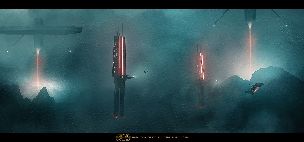 我有創作一幅《星際大戰粉絲概念藝術》,是深受電影《Star Wars:天行者的崛起》啟發,決定創作這個作品,我以白卜庭所居住星球的視覺特效為基底,在 Blender 上對天空塔進行簡單建模,然後在 Photoshop 上對其進行繪製。