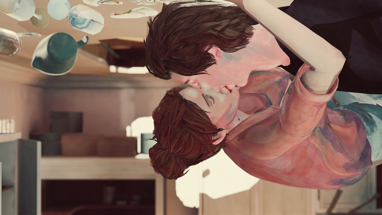《愛在失重時》為電影《愛在他鄉》製作團隊 Item 7 首部 VR作品,擅於捕捉細膩情感及生活細節的導演班傑明史泰格萊文,將愛情中抽象的關係變化,具象化為失重與分崩離析的超現實場景。一進到畫面,觀眾宛如融入了這對情侶的日常生活中,看他們如何與對方相處,看他們如何爭執,其中最令人驚豔的是生活失去重力,場景中的桌椅、餐具、杯具等物品飛向天花板,屋頂也破了個大洞,觀眾隨之跟著無重力地往上飄。獨特的表現手法,讓觀眾體悟到一段關係中的情緒拉扯與張力,雙方的驚慌失措與無力感。