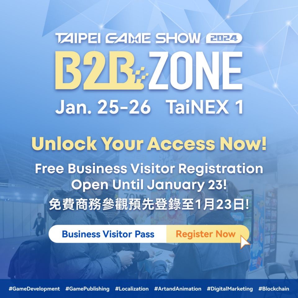 為提供更好的討論交流空間,2024 TGS 商務區將首度改在 5 樓展區舉行,遊戲產業相關人士,即日起至 1 月 23 日可進行預先登錄,只要通過資格審核,即可於展期前往現場兌換商務區參觀證。申請進階商務方案,還可在線上媒合系統獲得不限次會議邀約的權限,呼籲業界人士,把握先機,預先登錄立刻省下現場手續及換證費用。