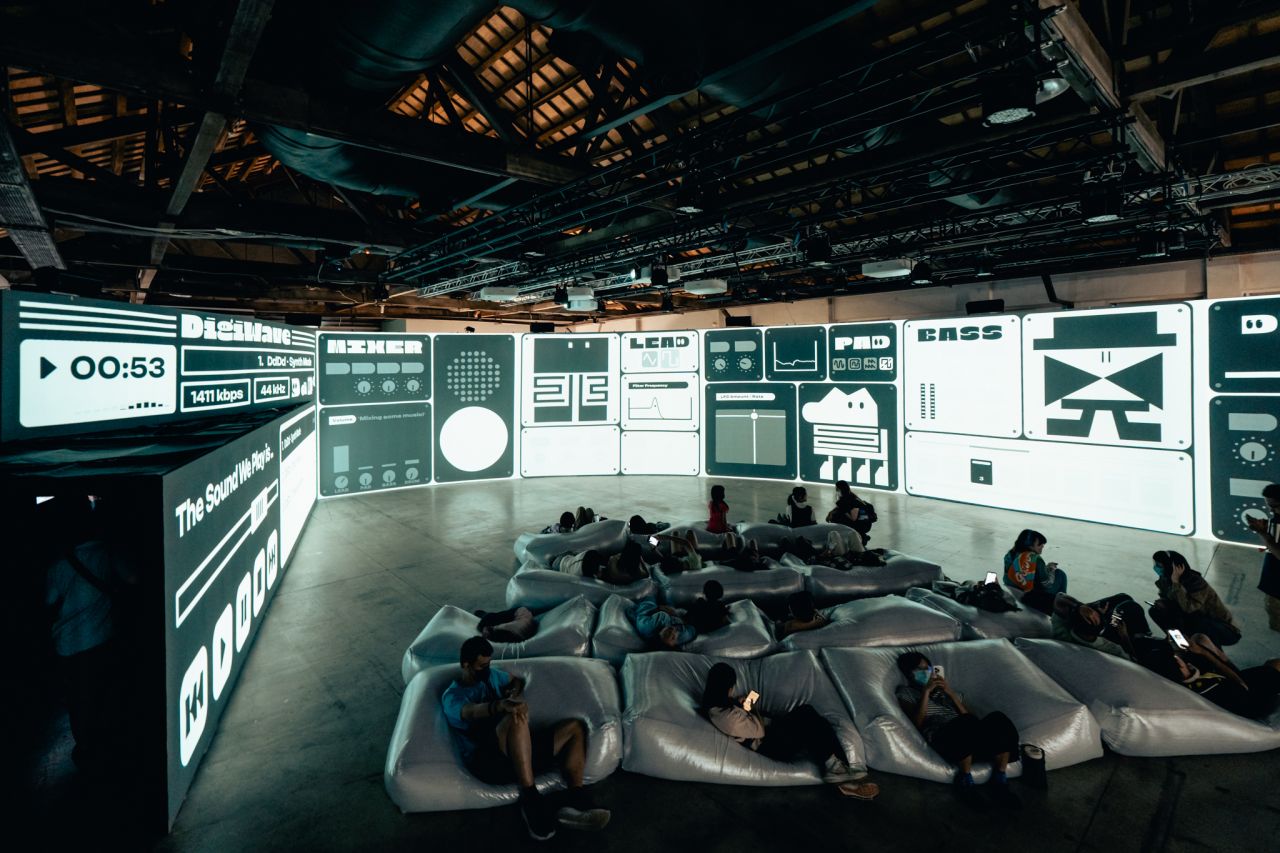 延續聲音相關活動,由叁式所設計的「2024 DigiWave DdDd」以聲音與科技為核心,搭配沉浸式體驗與影像裝置,讓體驗者的感官、思緒都包覆在聲音空間裡。展覽名稱「DdDd」的大寫 D 是指 Re 的音名,小寫 d 指 digital,拼湊起來即是各種聲音的可能;「2024 年,我們在追尋什麼樣的聲音?」,不論是黑膠、卡帶或到後來的 CD、串流音樂等等,人們的日常生活中早已充斥各式各樣的聲音。為此,展覽推出「日常場景 BGM」、「聽得到的 LOGO」、「把音樂帶出門」、「☾♫ 當科技工具成為聲音的魔法 ♪✬」、「怪奇樂器大賞」、「迷之聲音 ^ↀᴥↀ^:我到底聽了什麼????」與「聲音的未來:AI」七大單元,從日常到技術、載體到創作者,透過各個面向的歷史與案例回顧,親耳感受聲音的轉變。