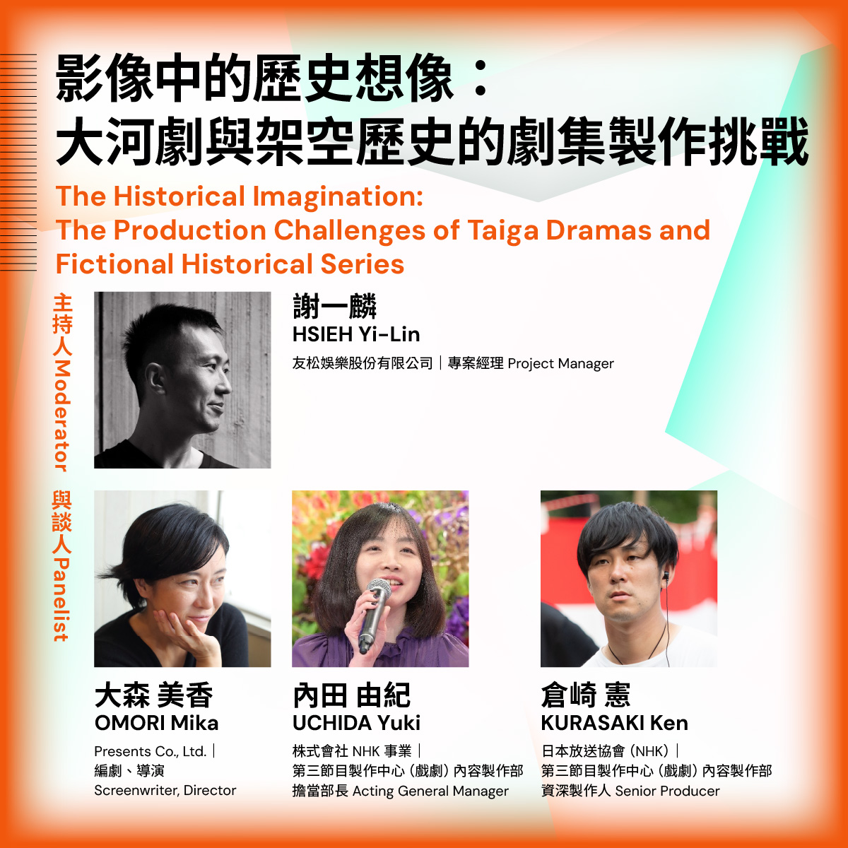 大家熟知的晨間劇《紅豆麵包》(あんぱん)製作人倉崎憲、大河劇《致光之君》(光る君へ)製作人內田由紀,以及執筆大河劇《直衝青天》(青天を衝け)、晨間劇《阿淺來了》(あさが来た)的編劇大森美香將首度來臺對談!剖析大河劇與晨間劇的製作經驗,談及如何在史實與戲劇之間進行創作轉化,以創新手法延續歷史題材的時代魅力。