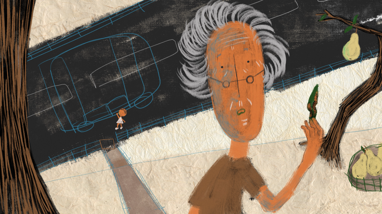 導演 Shadab SHAYEGAN 長期關注兒童議題,本次她首度聚焦在孩子面對親人罹患疾病,而造成身體缺陷的狀況。曾經身為幼童的我們,肯定也遇過自己不了解卻又想找出解決辦法的經驗,導演利用手繪動畫風格,搭配影子與梨子等元素,來描繪孩子們天真無邪的想像力。