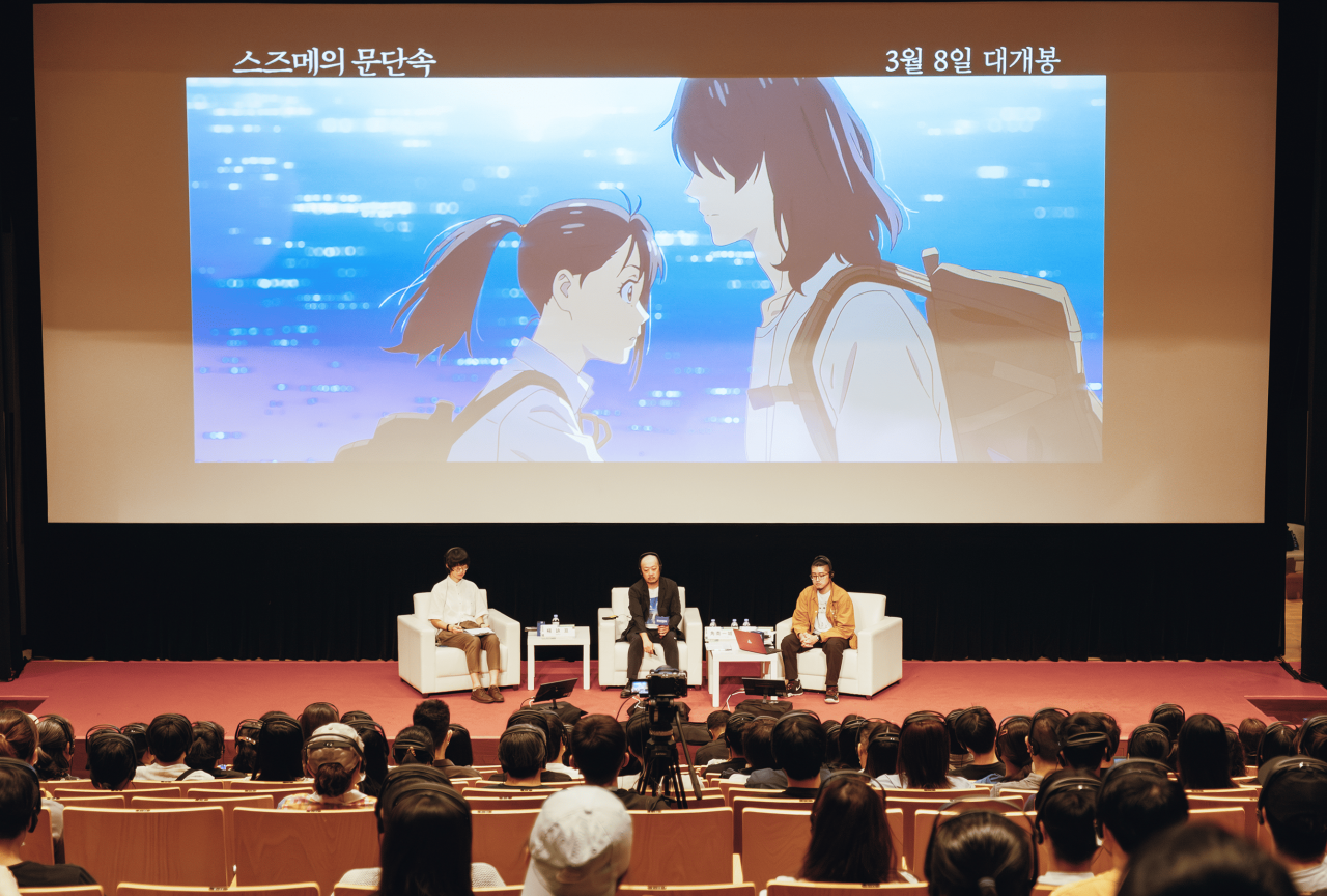 新海誠的作品藝術與商業性兼具,講者角南一城與篠崎裕道介紹動畫作品行銷與幕後製作流程,並詳述 CoMix Wave Films 動畫工作室的職場文化,以及回應觀眾日本動畫產業現況。