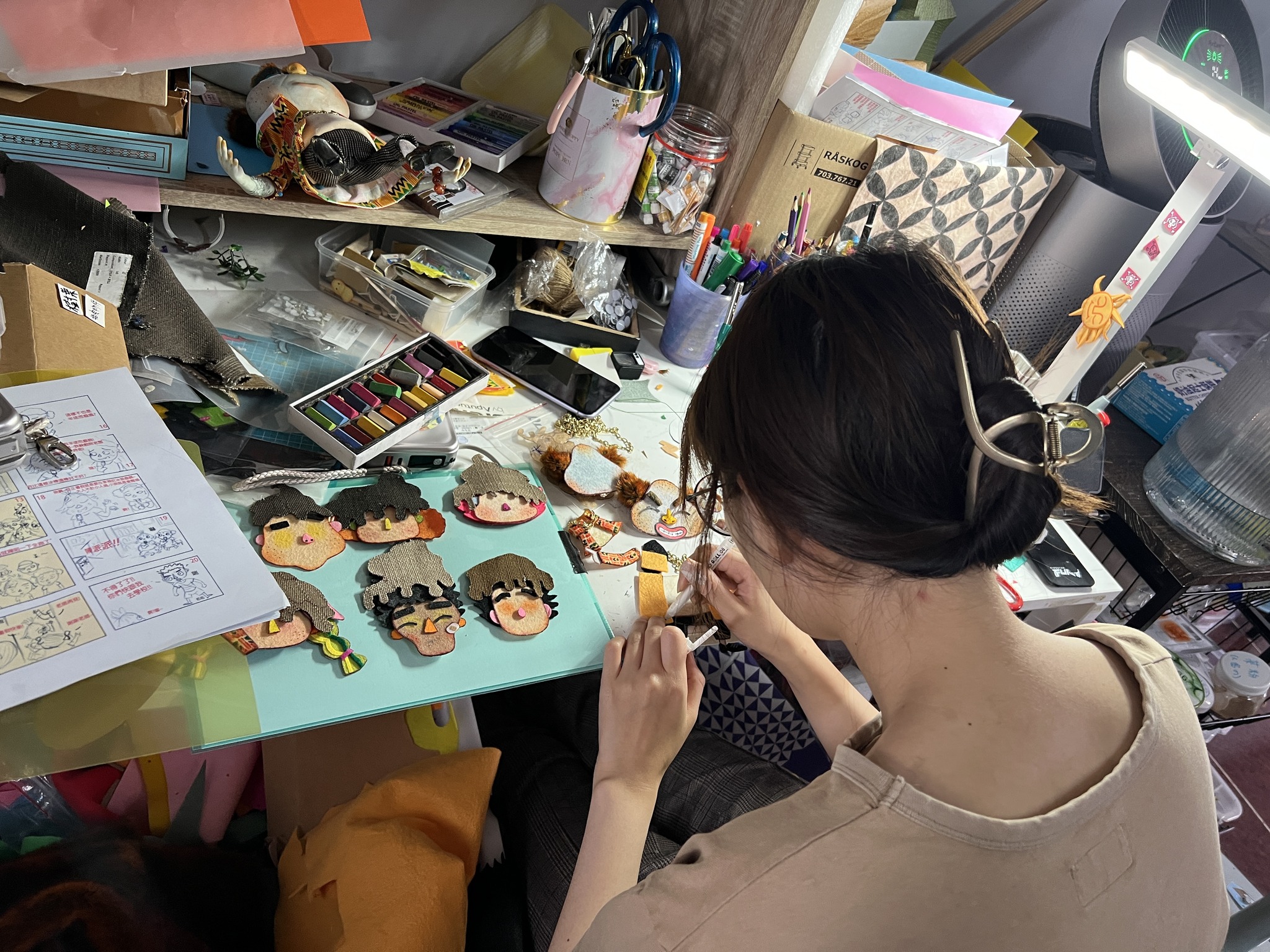 團隊開始複製人偶,打造猶如真人演員般的「替身」,其中女主角派派就有四、五個替身、主要的同學角色則各自複製了三隻偶;為了配合偶的數量,場景也被重製擴編,劇中的雜貨店就有 3 座,教室則是增設至 2 座。到後期人偶身上的嘴唇、眉毛經常會落下,又被動畫師「偷黏」到其他偶身上,過程忙亂又有些好笑:「我乾脆幫大家製作大量的五官配件,動畫師就不用花時間到別人的攝影棚找道具。最終光是女主角就擁有二、三十個嘴唇配件。」他們利用這次經驗,重新反思流程安排,學習如何在下一次做得更有條理。
