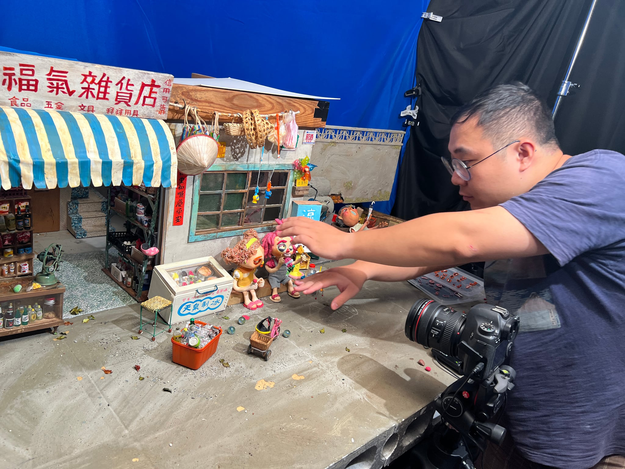 過往小弦總是笑說,停格動畫集傳統動畫與實拍電影的缺點於一身,背後製程比冰滴咖啡還慢。《我是陳派派》每一秒畫面至少要由 10 張照片組成,為了縮短製程,團隊在宜蘭工作室開設了 6 座攝影棚。她停頓道:「這時問題就來了,每一座攝影棚都需要運用到人偶,因此主角的數量其實不夠。」