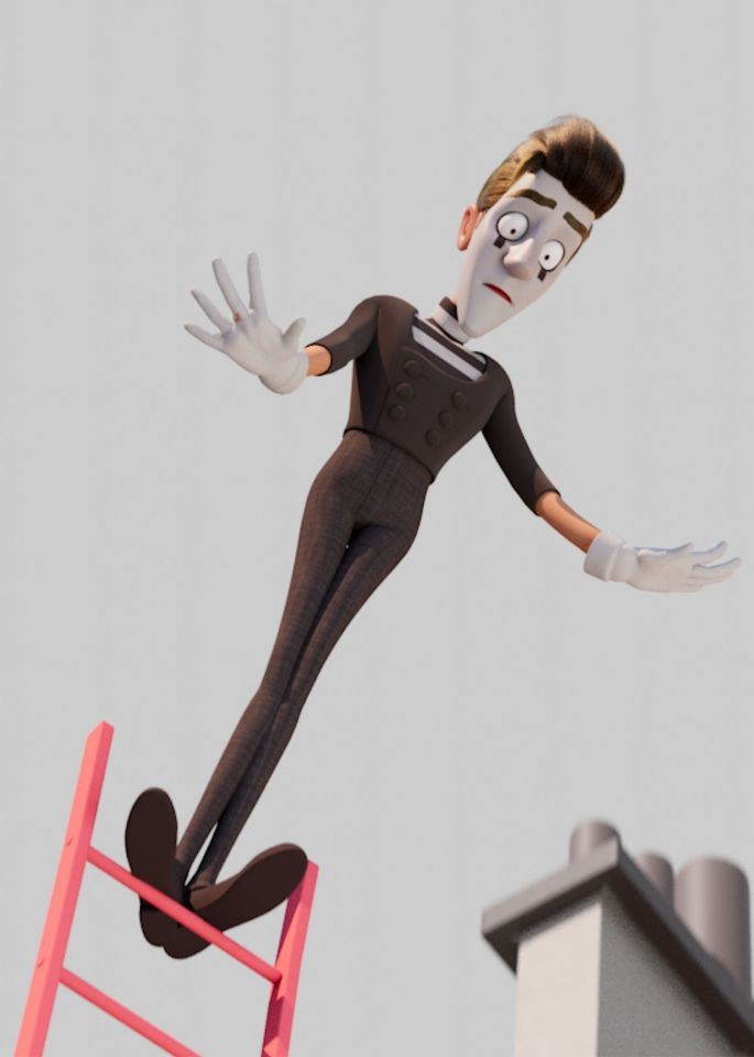 Kate:經過一趟輕鬆愜意的巴黎小旅行後,腦中突然浮現了一個奇怪的問題:「如果一位默劇演員決心不表演,並把一名普通人困在由透明盒子與梯子所組成的默劇世界中,那該怎麼辦?」於是我把這個問題發展成一部短片,與我的搭檔一起去做,並增加其他故事情節與情緒,傳達人應該如何看待別人設下的圈套,以及如何處理自己憤怒的情緒。