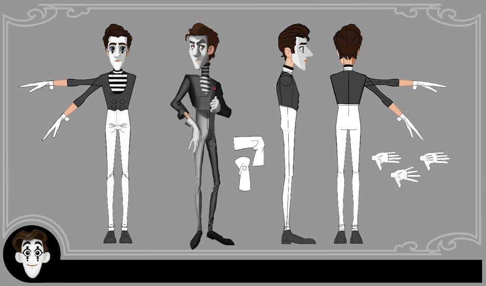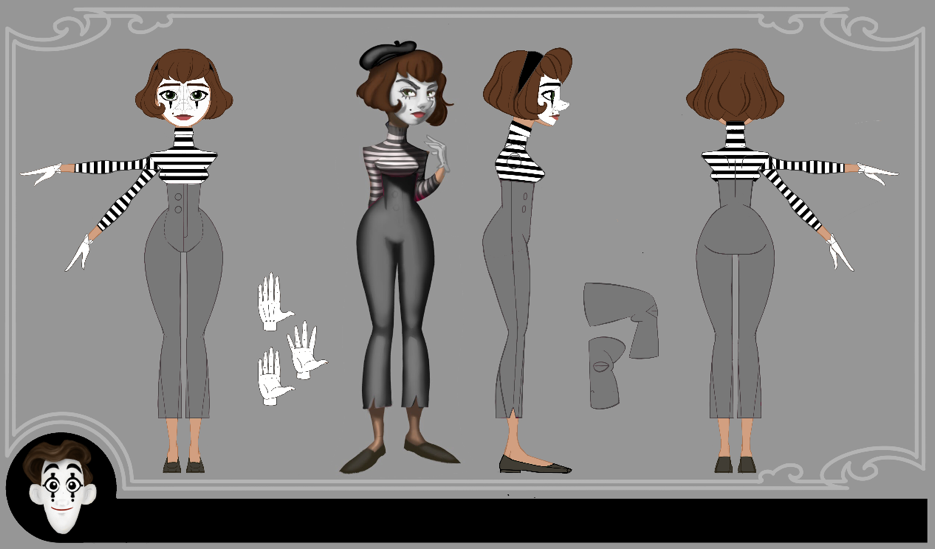 Kate:我們希望能打造出具有吸引力的風格化角色,因此反覆研究默劇演員的外觀,直到我們創作出理想的結果,而我相信動畫是一套最能貼近現實的說故事方式,透過劇中角色的行為與動機,與觀眾獲得共鳴,進而創造普世的情感價值,因此我在設計時,會思考如何運用身高、外觀裝飾來強化角色性格,將故事概念具象化,並附有強烈情感。於是我設計出以下角色。